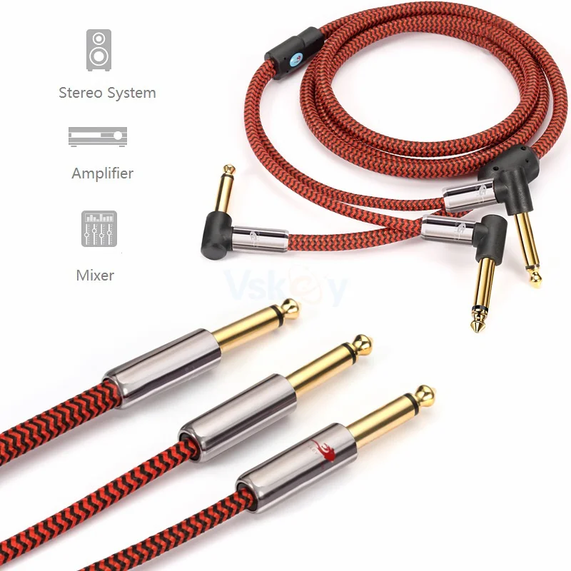 1/4 "TS (6,35 мм) моно штекер на двойной 1/4" (6,35 мм) моно штекер, сверхмощный Премиум класс аудио Y-сплиттер кабель