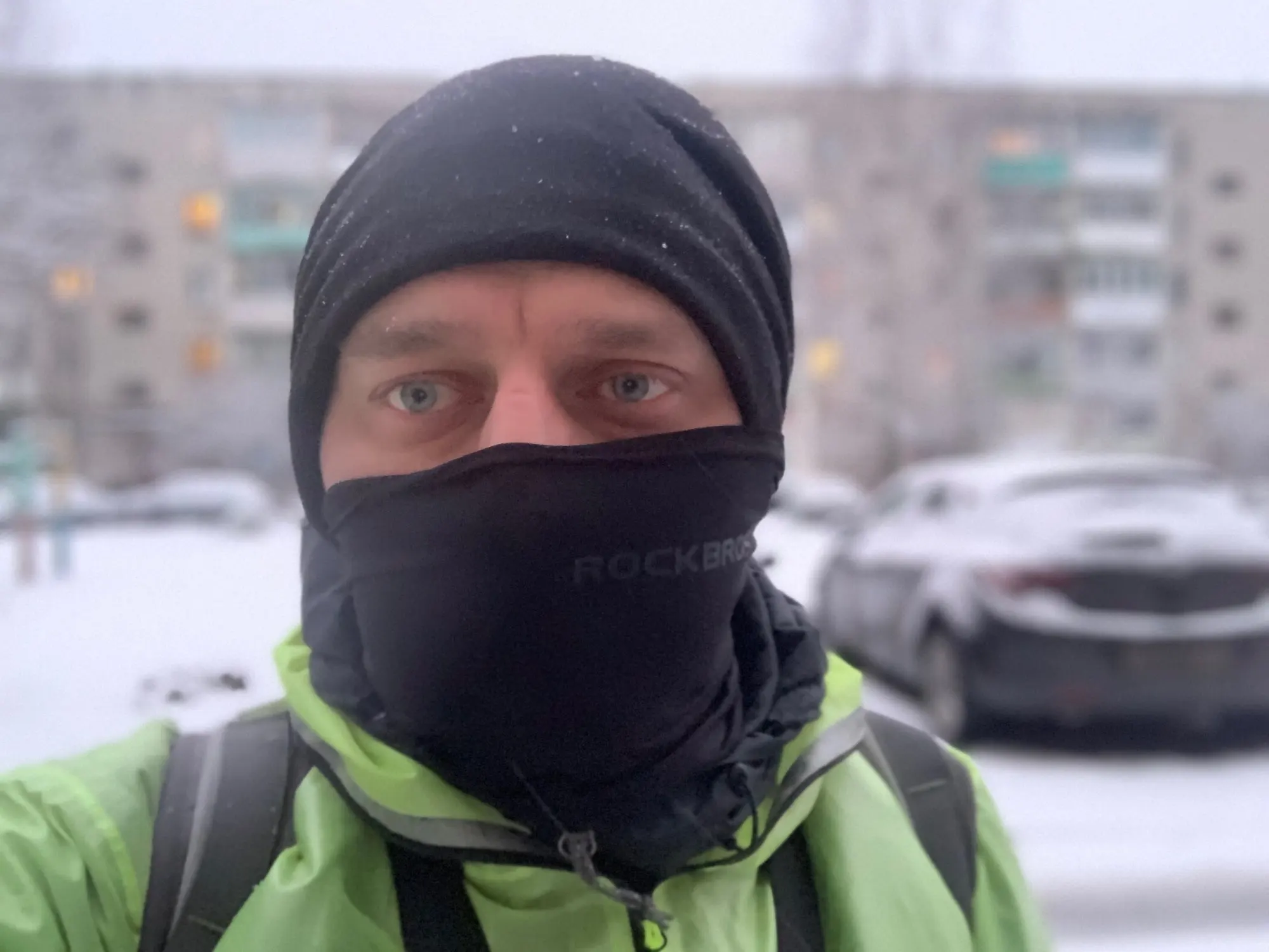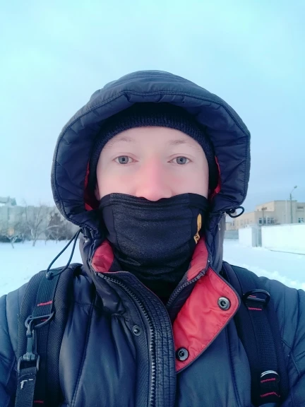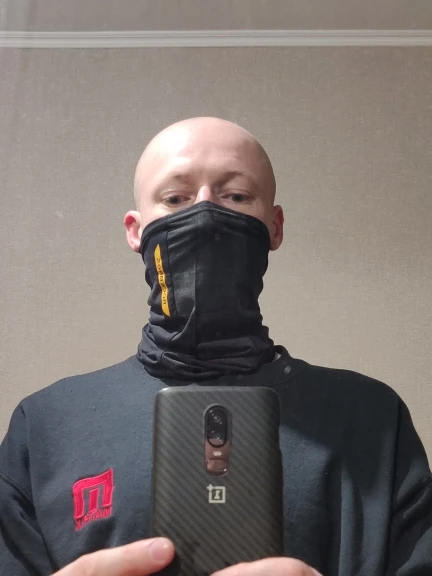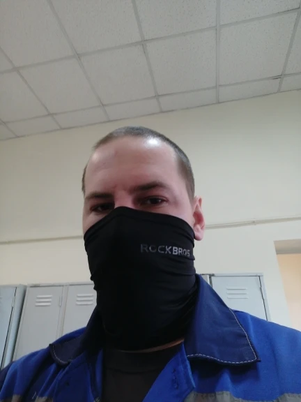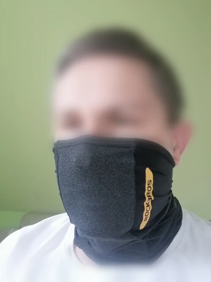 Материал ну оооочень скользкий, так и не смог одеть так чтобы шарф не сваливался при движении головой, складывал в 2 слоя вроде более мнее, но пару раз кивнуть головой и шарф сваливается с носа до уровня подбородка, жутко бесит, в три слоя слишком туго и не удобно, в целом не плохо.