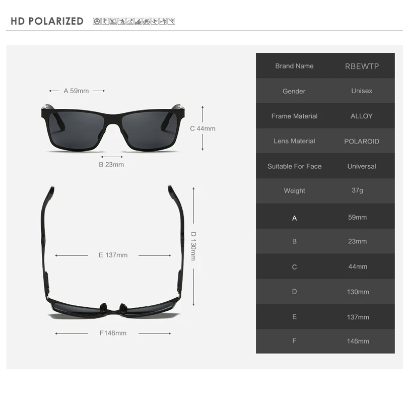 RBEWTP брендовые дизайнерские поляризационные солнцезащитные очки д...