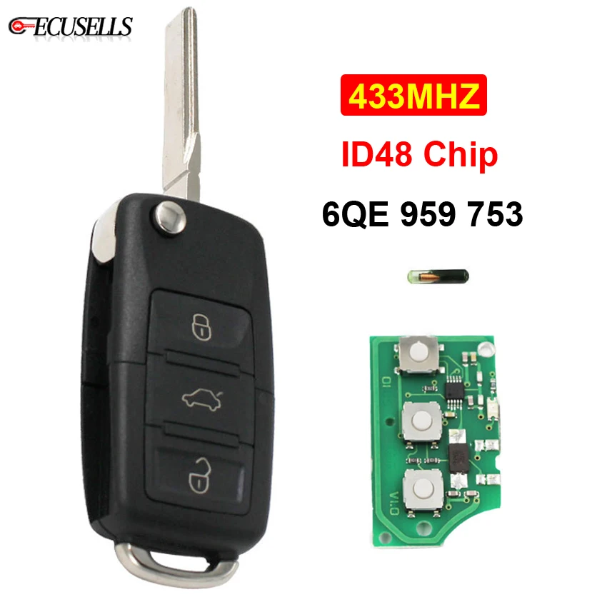 3-кнопочный складной дистанционный ключ 6QE 959 753 433 МГц 6QE959753 ID48 чип для Volkswagen для VW Fox Gol Sharan Saveiro HU66 Blade