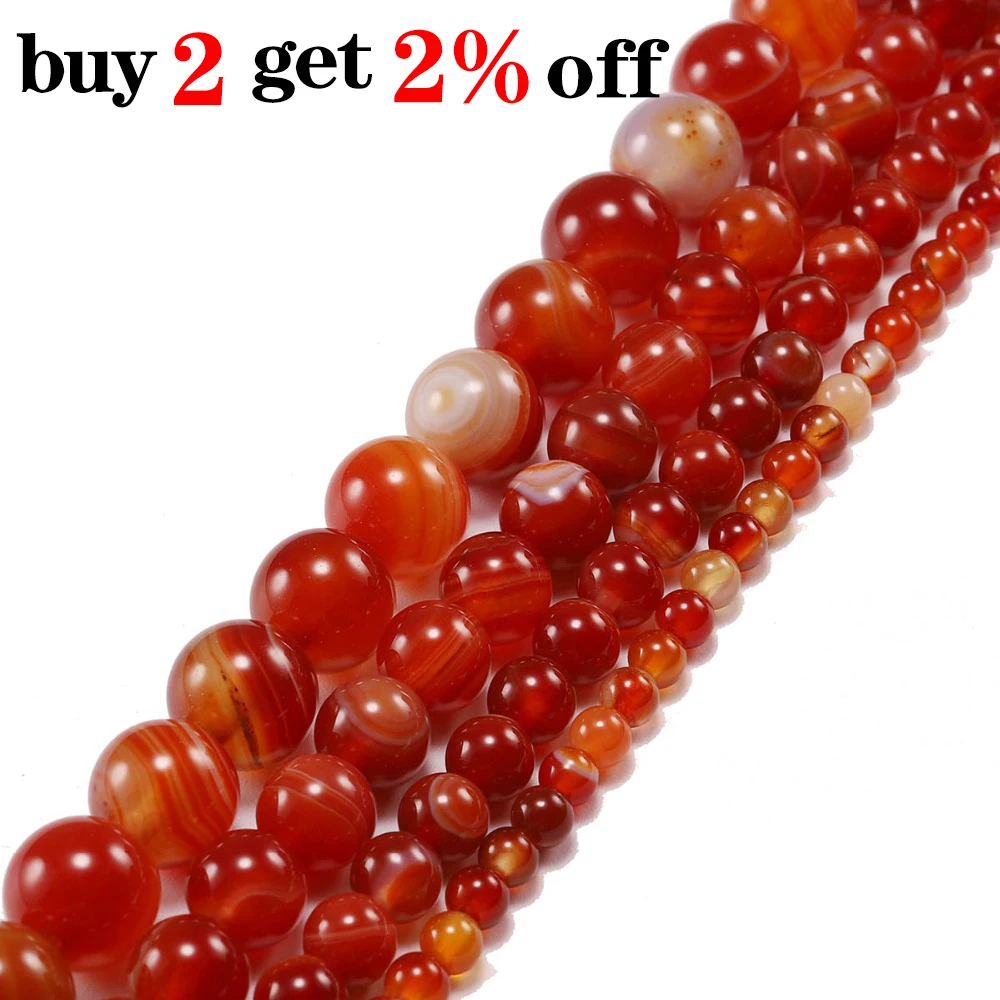 Красные бусины Круглый Сердолик натуральный Окантованный агат натуральный камень Шарм бусины для самостоятельного изготовления ювелирных изделий браслет ожерелье 4 6 8 10 12 мм
