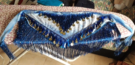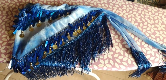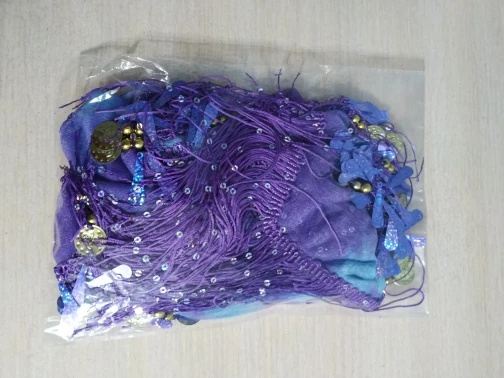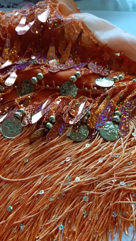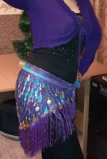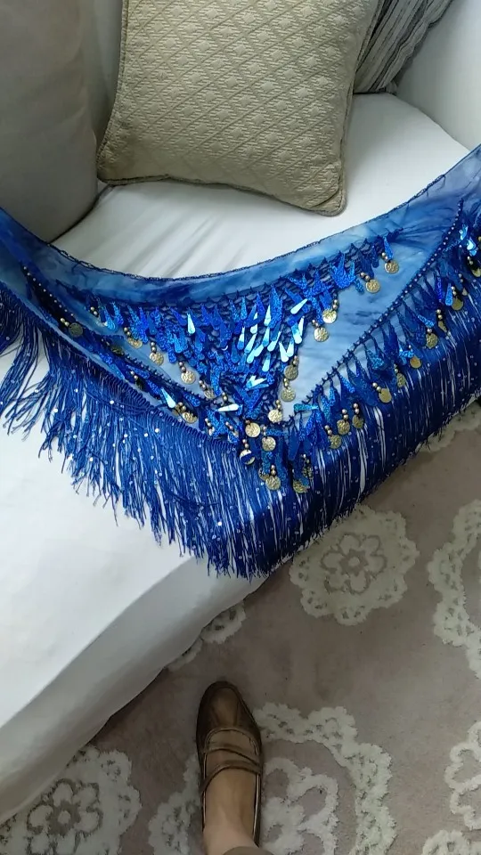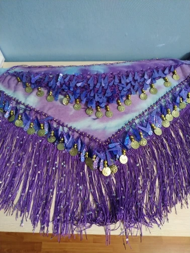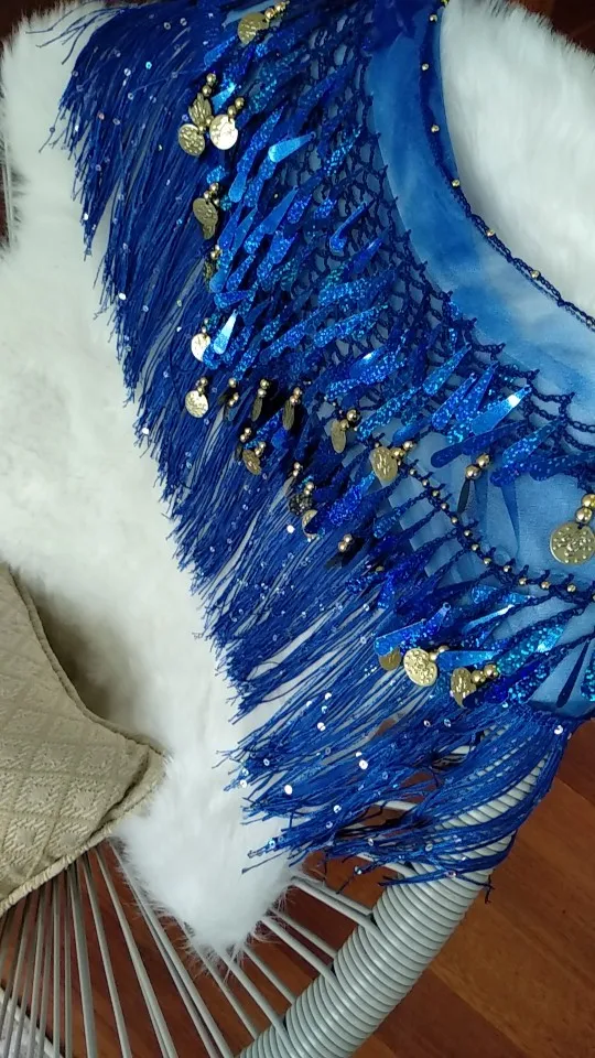 У меня есть по крайней мере два каждого цвета. Мы используем их для танца живота. Мы используем один бюстгальтер. Для крупных дам или для того, чтобы показать талию, я удалю часть бахромы на концах «сверху» и, при необходимости, наношу ее на пояс.