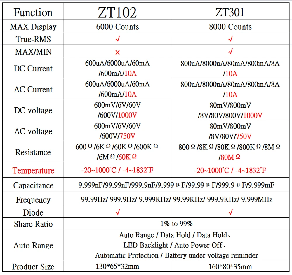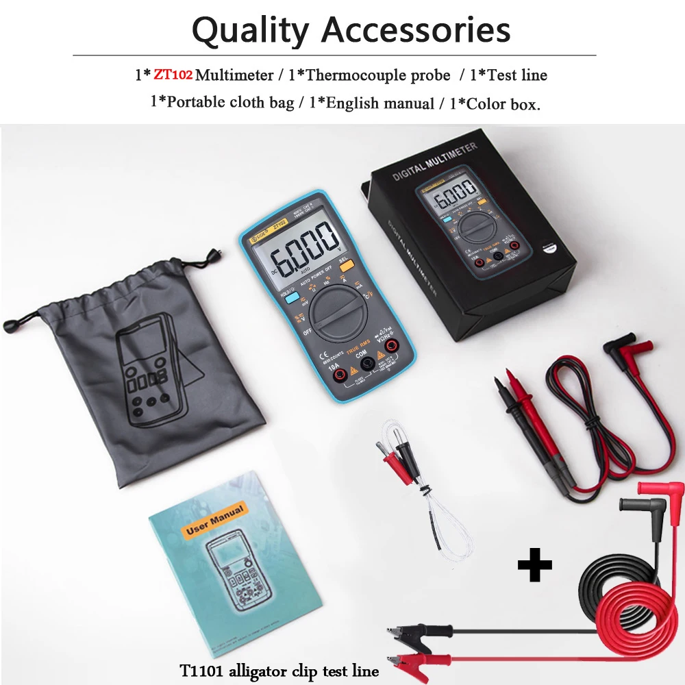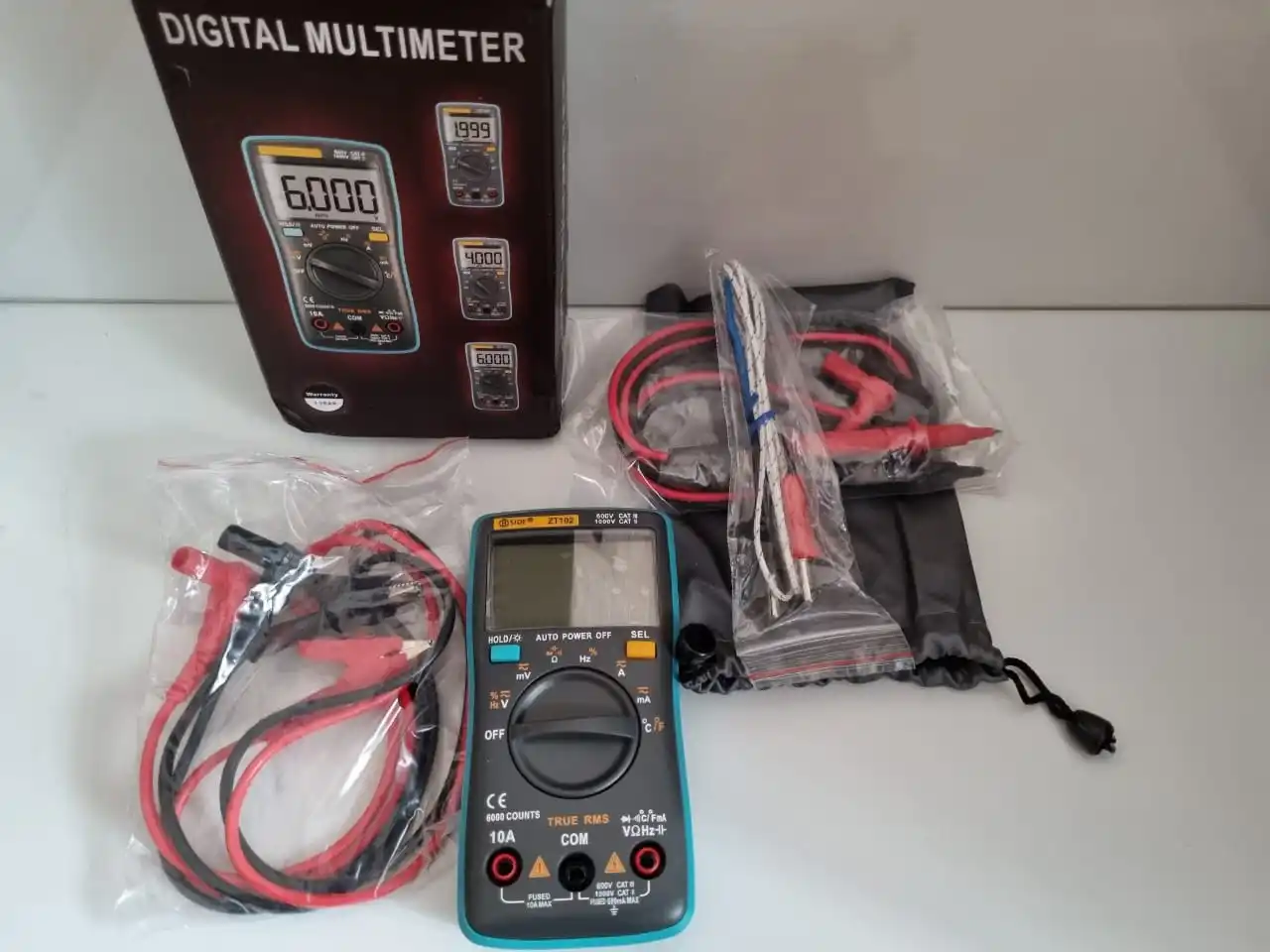 Заказ доставлен очень быстро - за4 дня. Товар полностью соответствует описанию. Мультиметр ZT102 проверил в нескольких режимах - измеряет достаточно точно. Удобен в работе.