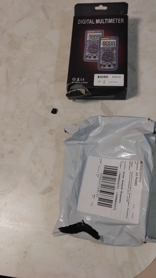 Посылка пришла целая, мультиметр заказывал в мешочке и в картонной коробке. Продавец дополнительно завернул в пупырку в четыре слоя, упаковано отлично. Проверил все работает нормально показания соответствуют.