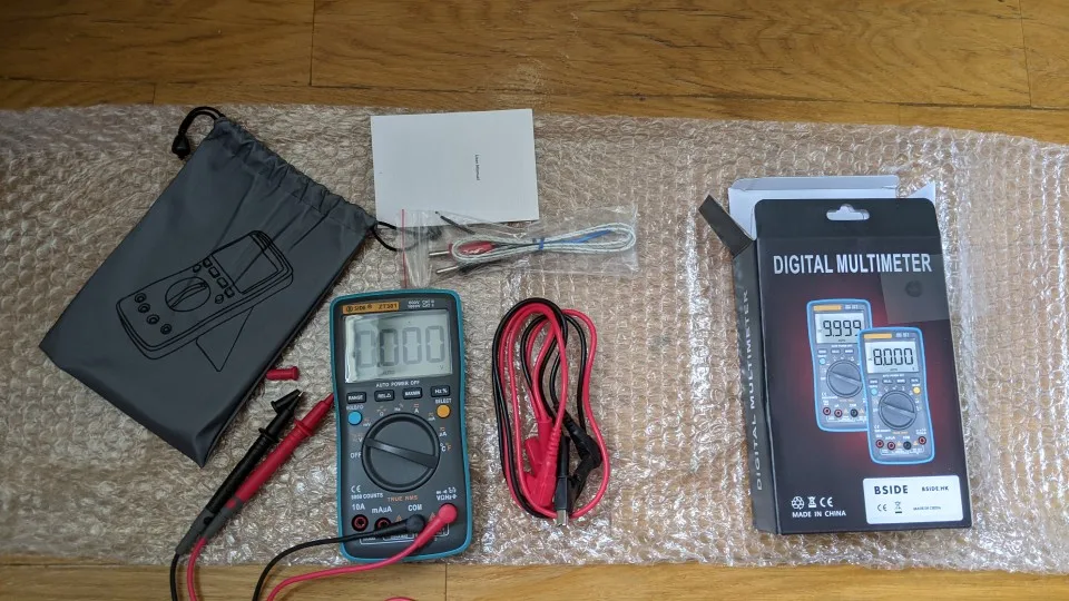 Пришло за 5 дней. Из минусов - упаковано плохо, даже не обернули упаковочной лентой, в итоге коробка развалилась по дороге, хорошо хоть прибор жив остался. Полная комплектация с "крокодилами" даже не влезает в штатную коробку, и тем более в чехол. Сам прибор работает, все режимы активируются, хотя на большинстве режимов проверить не смог, точность оценить нечем, некоторые и применить негде. Режимы переключаются шустро, прозвонка быстрая. Прибор собран крепко, внутри все цивильно, грязи и лишнего припоя мало. У моего экземпляра плохо держится подставка и постоянно открывается, остальное норм. По отзывам у прибора легко мнется экран при хранении под давлением, поэтому советую хранить аккуратно, чтобы экрана ничего не касалось.