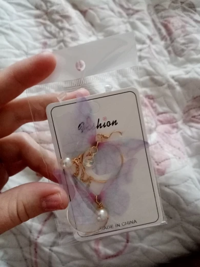 Товар прибыл в Москву за 25 дней.Очень нежные и красивые серьги.Соответствуют картинке,Качество хорошее,только серёжка немного помялась в упаковке.С ними немного сложно ходить если волосы распущенны,а так в принципе все хорошо