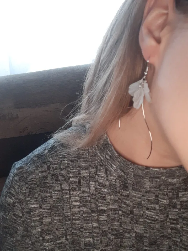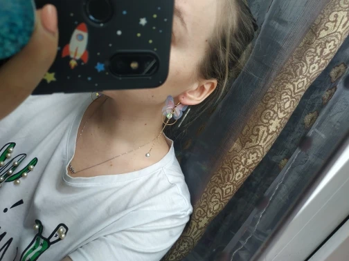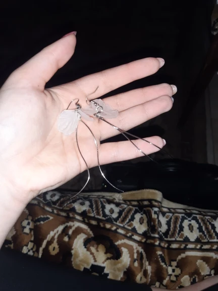 Серьги лёгкие, нежные, красивые как на картинке, единственный минус - очень хлипкая фурнитура. Она гнётся даже просто от того, что лежит.