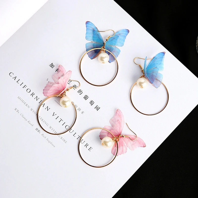 Красивые,необычные серьги! Бабочки из тонкой ткани ,не пластик!