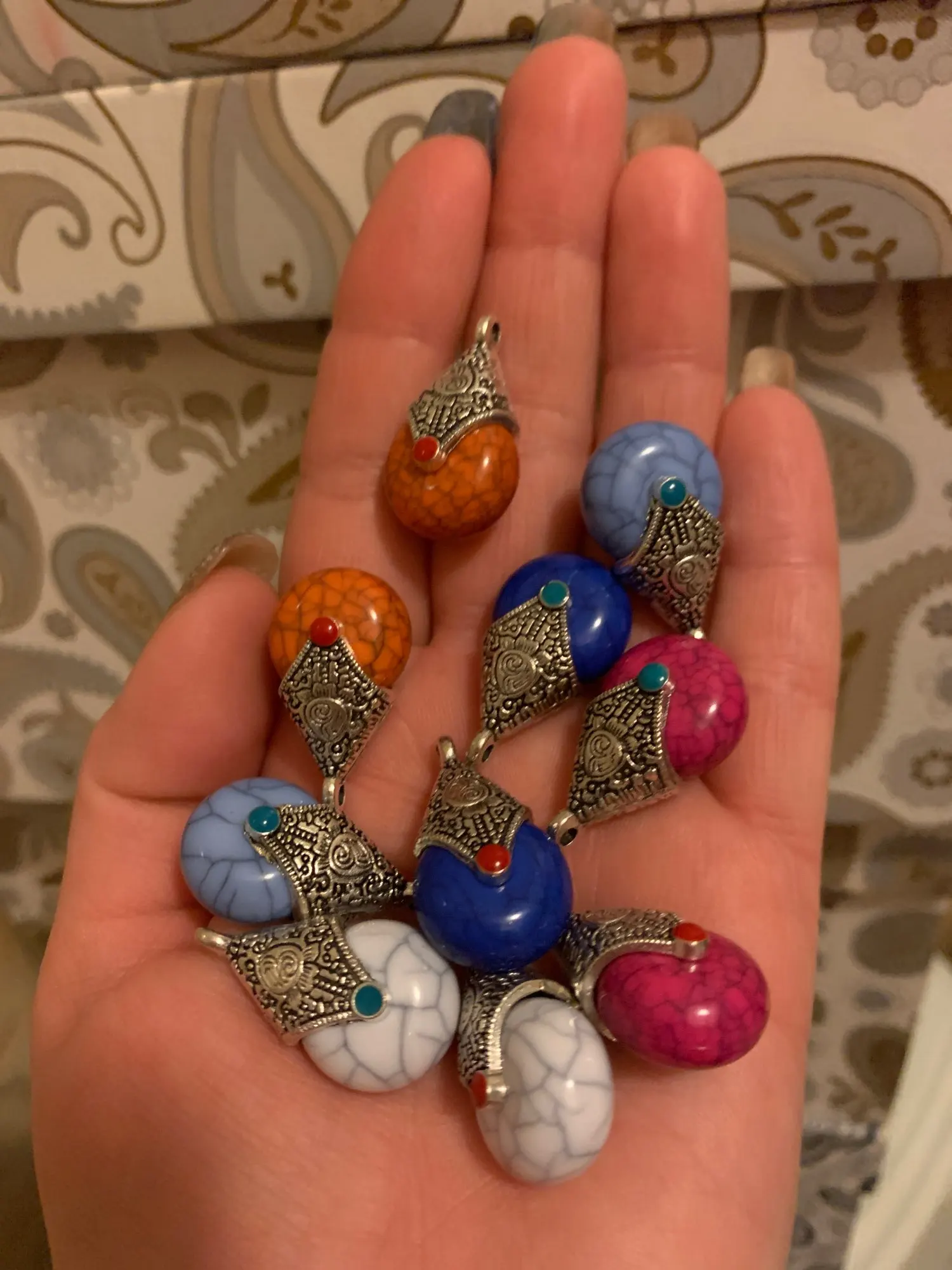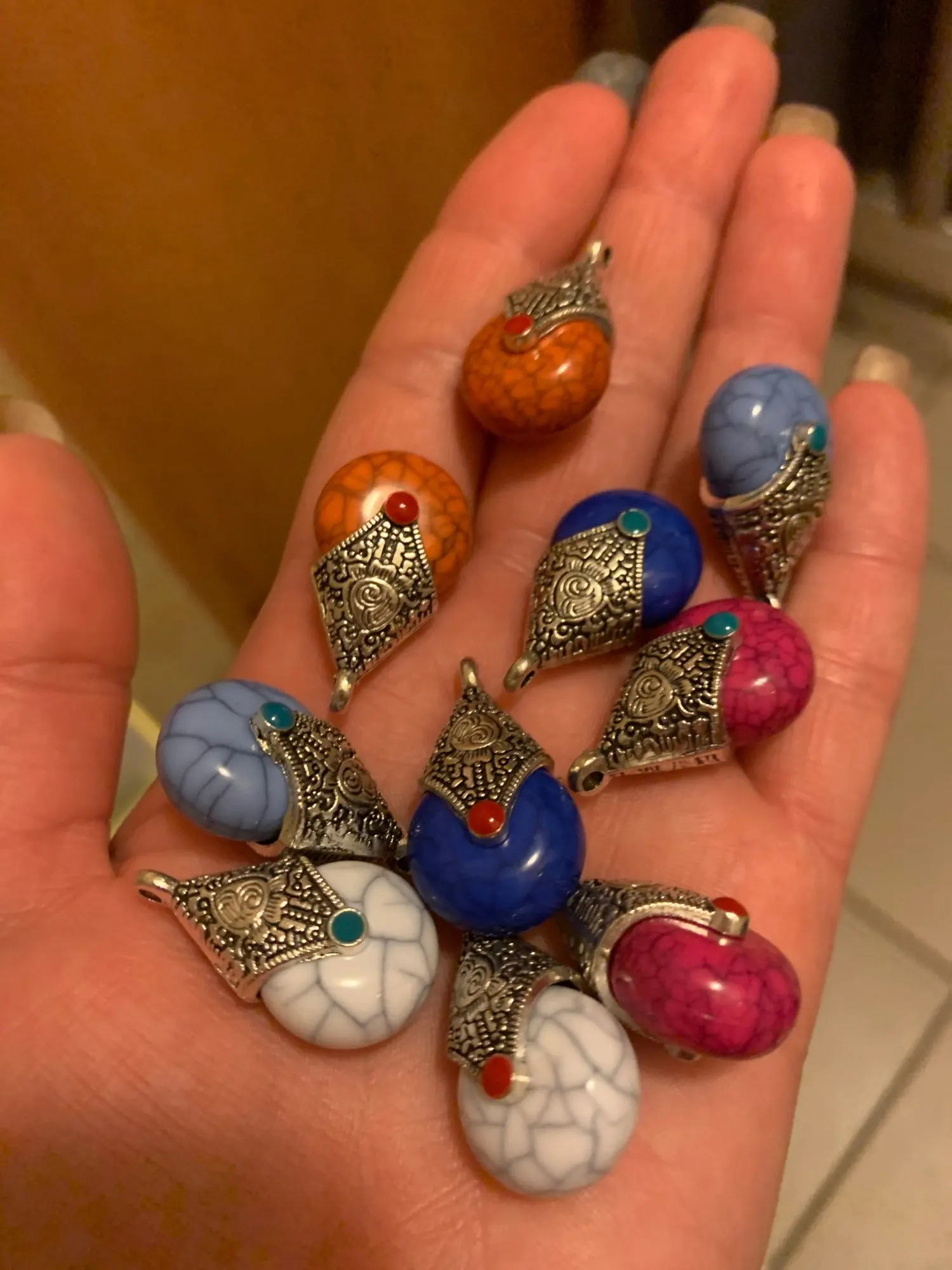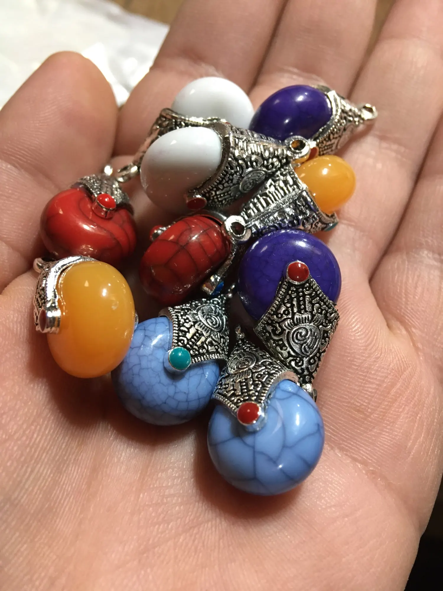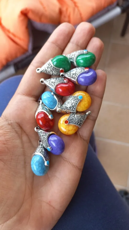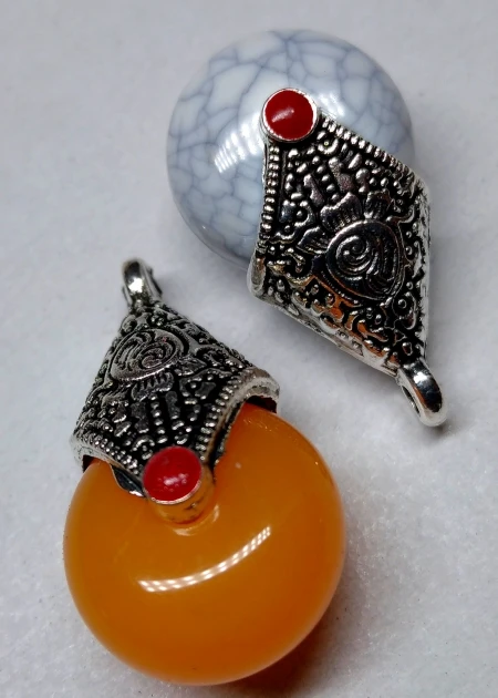 Не такие красивые как на фото, но продавец положил парные по цвету кулонички, понравились