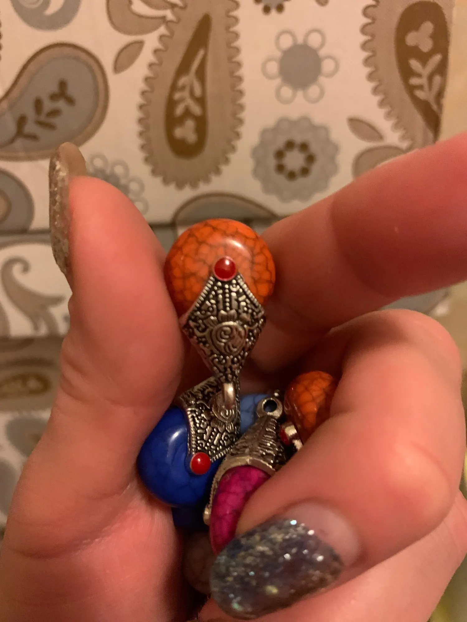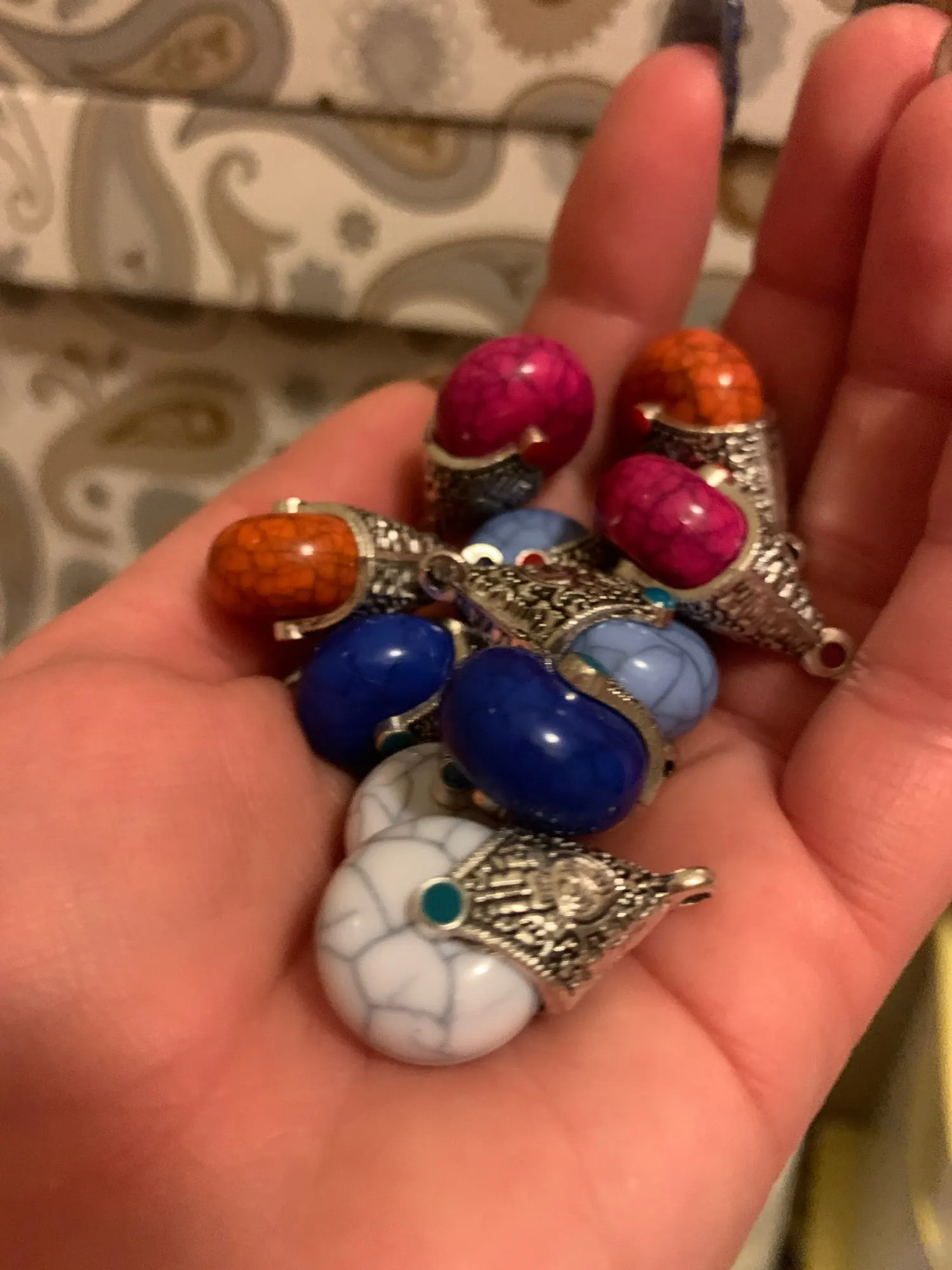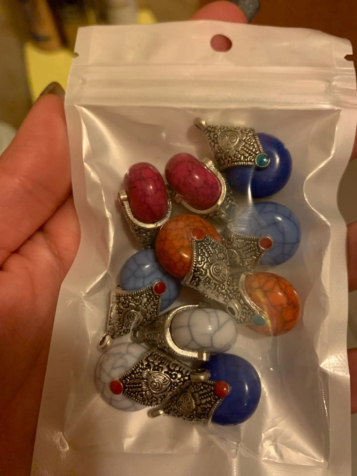 Не такие красивые как на фото, но продавец положил парные по цвету кулонички, понравились