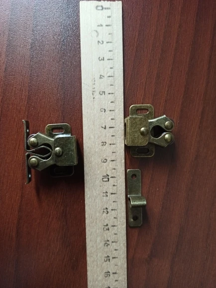 защелки для мебели пришли за месяц. чтоб рассоединить эти две части, нужно приложить усилие. качество хорошее.