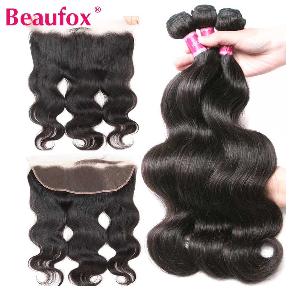 Beaufox человеческие волосы с закрытием малазийские объемные волны 3 пряди с фронтальной застежкой Кружева Фронтальная застежка с пряди нет Remy