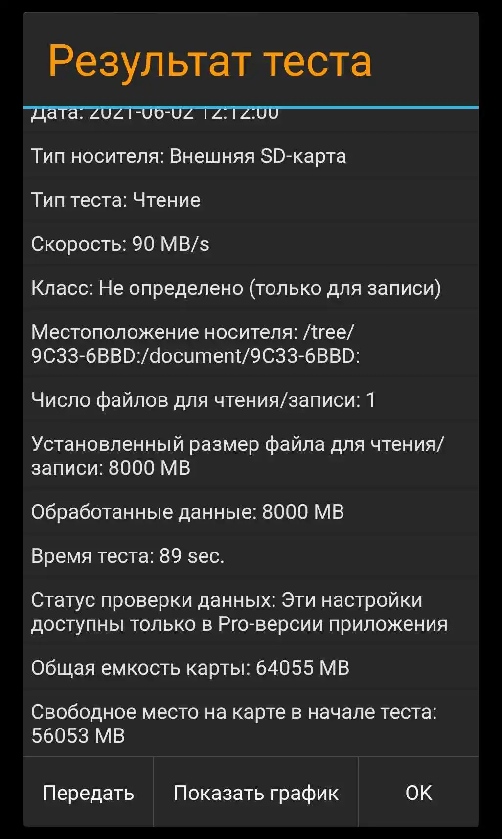 Товар соответствует описанию. На первый взгляд, качество хорошее. Доставка за 9 дней до пункта самовывоза. В моем случае это была Сберлогистика. Хочу отметить, что синий цвет разъема для USB не означает соответствие стандарту USB 3.0. Это просто синий цвет, не более. Картридер прилично режет скорость. На скринах пример скорости чтения и записи microSD EVO Plus U1 на телефоне без картридера и на компьютере через картридер и разъем USB 3.0. Скорость чтения ниже на 68,6 MB/s, скорость записи ниже на 8,9 MB/s.
