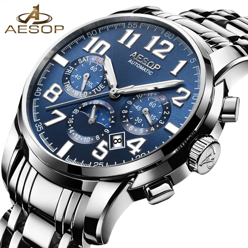 Часы наручные AESOP Мужские автоматические, модные брендовые механические ударопрочные водонепроницаемые, синие