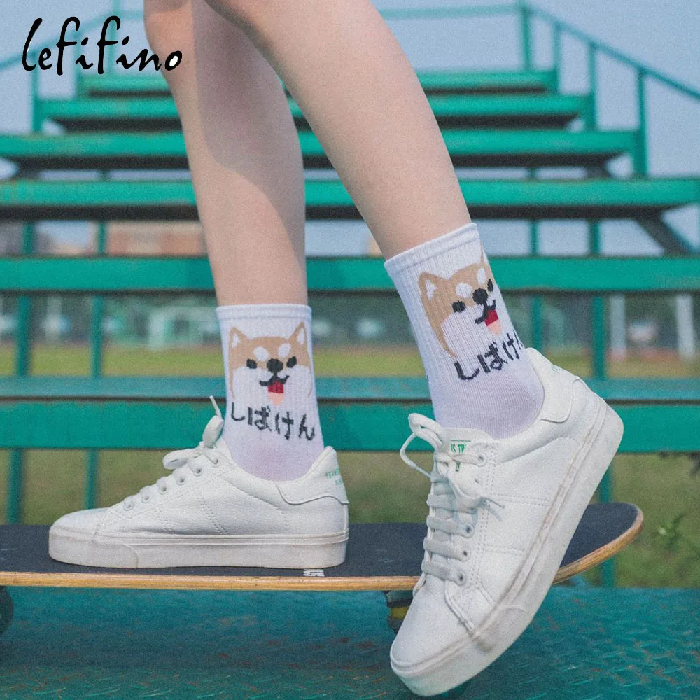 Носки унисекс в японском стиле Харадзюку, милые Мультяшные животные, собака, динозавр, носки из хлопка с кошкой, милые смешные, креативные, Ne73030