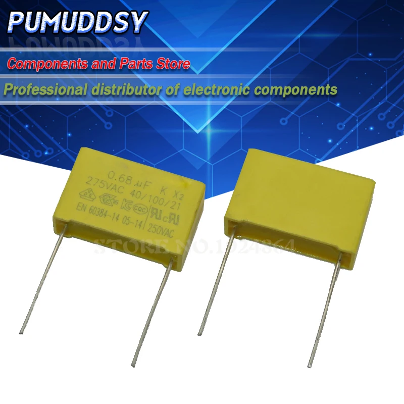 10 шт., конденсатор 0,68 мкФ Ф, 10 шт., конденсатор X2, 0,68 В переменного тока, НФ, шаг 22 мм, конденсатор из полипропиленовой пленки X2, мкФ Ф