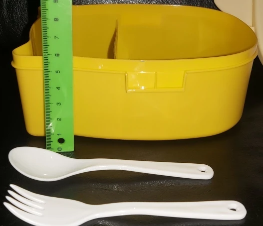 Коробка очень большая, достаточна для обеда. Но плохо застегивается, у меня, если потрясти, одно крыло-застежка раскрывается. Дополнительно резинками обматываю.