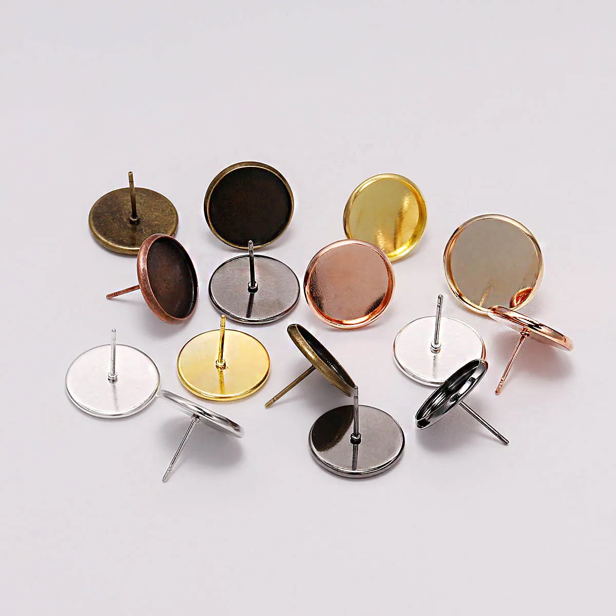 20-50 шт.лот пустые сережки из нержавеющей стали 8 10 12 14 мм кабошон камея настройки ободок лоток для поставок ювелирных изделий