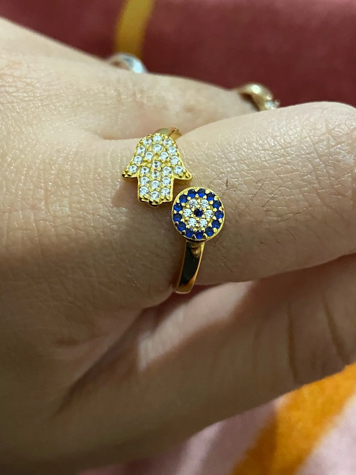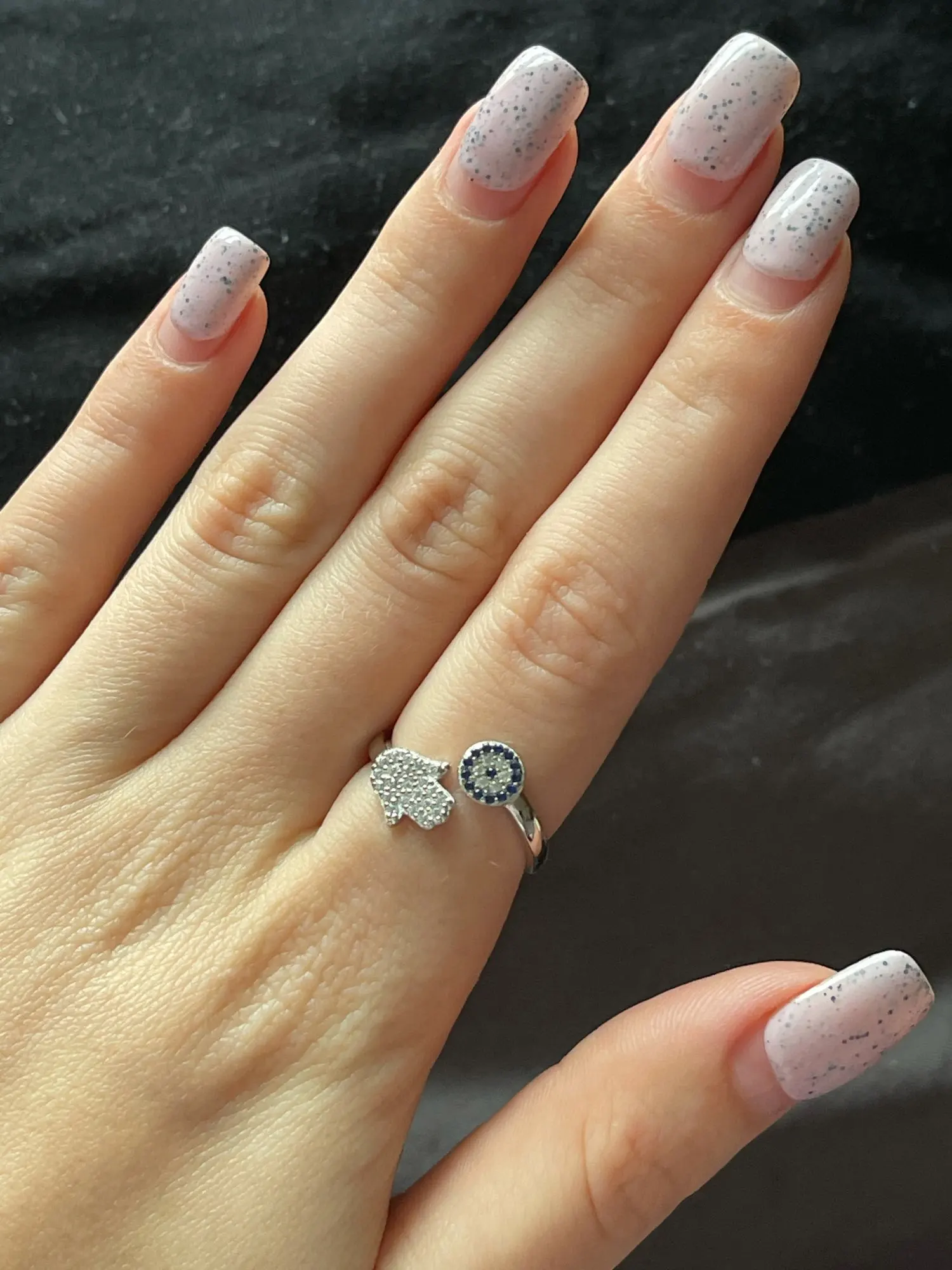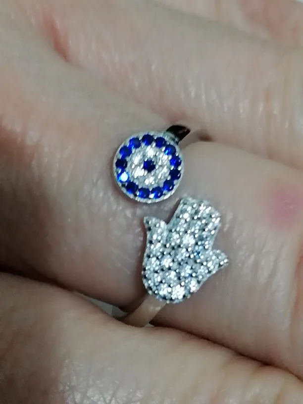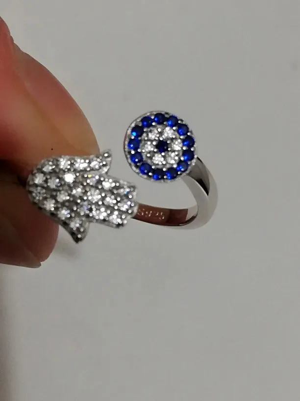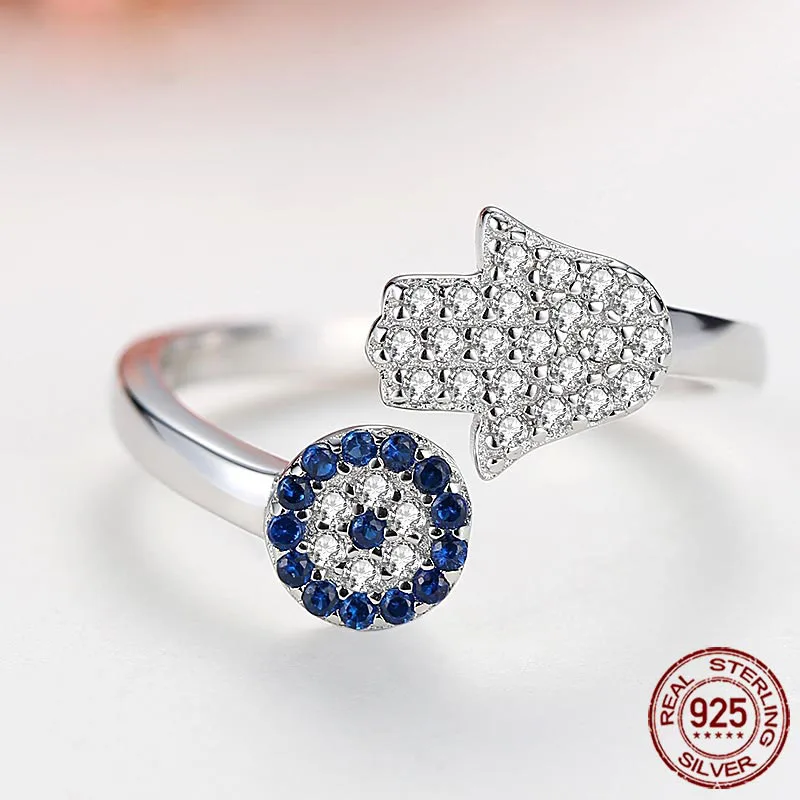 Женское Открытое кольцо TONGZHE, регулируемое кольцо из стерлингового серебра 925 пробы с изображением хамсы и голубого глаза, ювелирное украшение для свадьбы