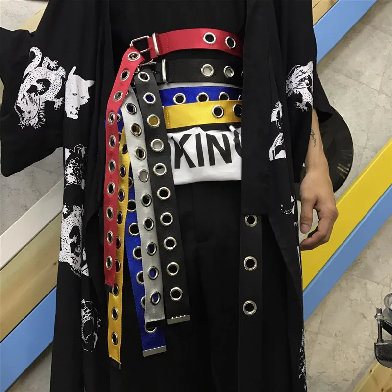 Холщовый металлический пояс с большими отверстиями, длинный Повседневный ажурный пояс в стиле Харадзюку, женский пояс с вырезами, Европейский Американский стиль