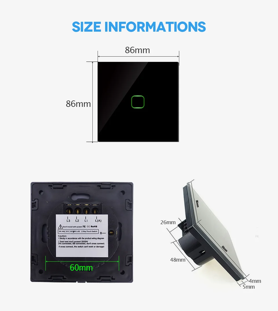 5. 2-или 3-сторонний сенсорный выключатель имеет функцию управления после его установки.