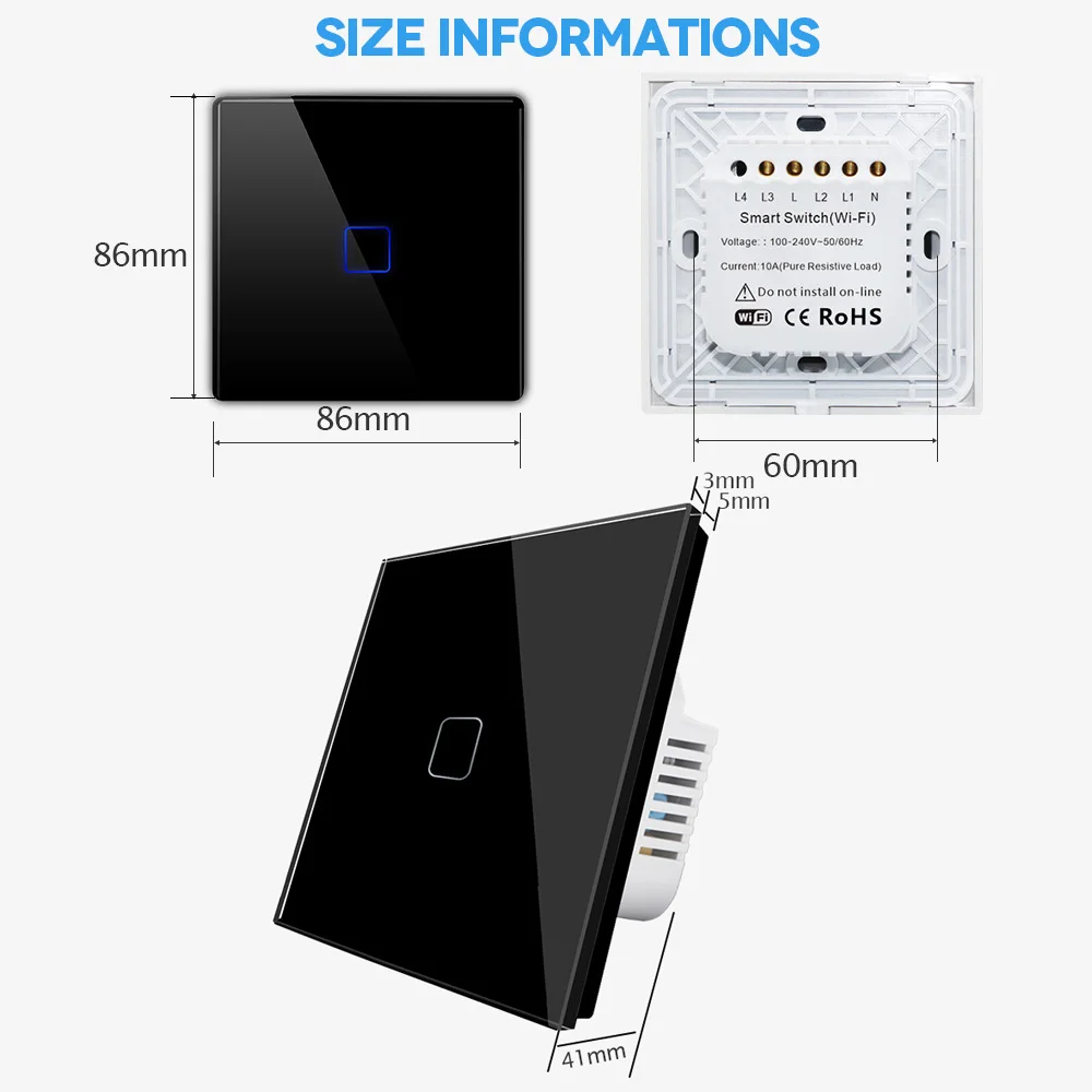 Технические характеристики Модель:ЕССтандартРежим:2Способ управления и удаленный тип Источник питания:Одиночная прямая линия Частота приема:433,92 МГцМатериал панели: Хрустальное стеклоПанель Размер: 86 мм * 86 мм Цвет: черный/белый/золотистый/серый Сенсорный выключатель 1G/2G/3G 2 W 1. TОн защищен от влаги и выветрен, вдали от опасности поражения электрическим током.