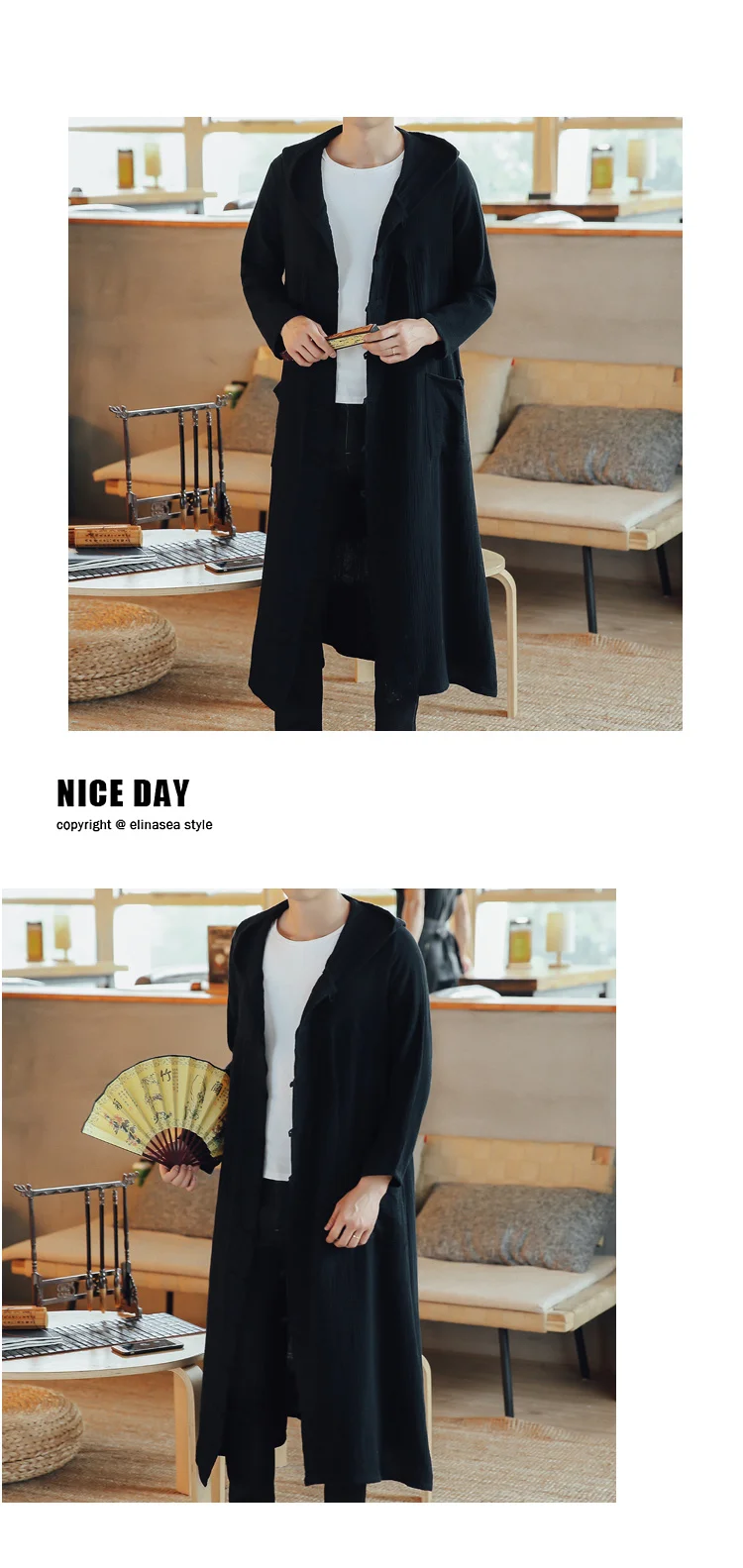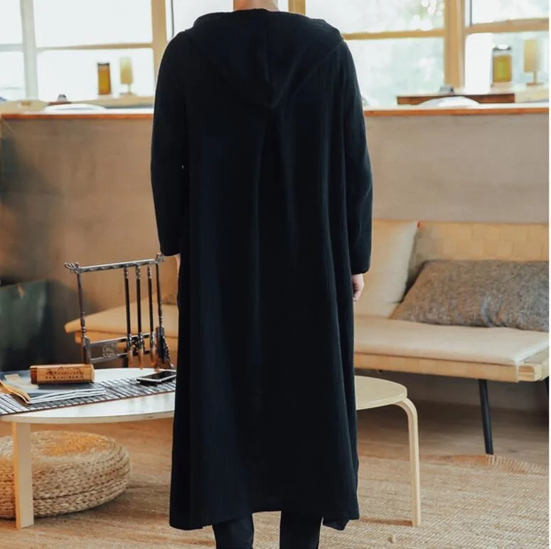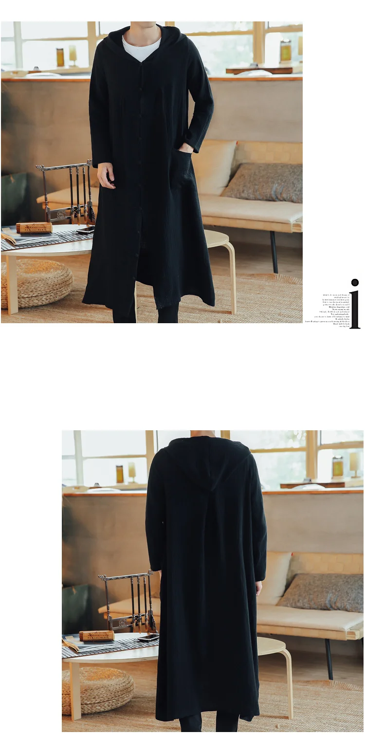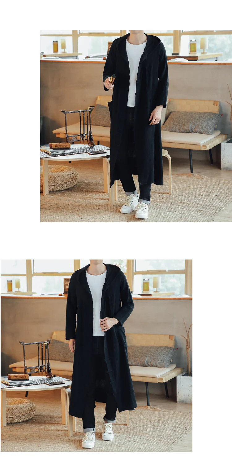 Тренч мужской длинный Повседневный с капюшоном, жакет, кардиган, кофта, верхняя одежда, пальто, свободное худи, Длинная тонкая куртка в стиле Харадзюку, весна-осень
