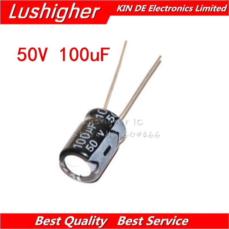 Алюминиевый электролитический конденсатор DIP, 50 шт., 50 в, 100 мкФ, 8*12 мм, 100 мкФ, 50 в, 8x12 мм