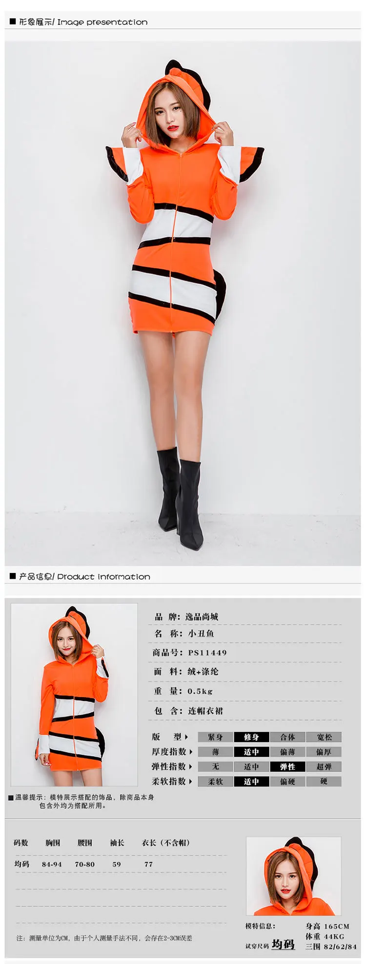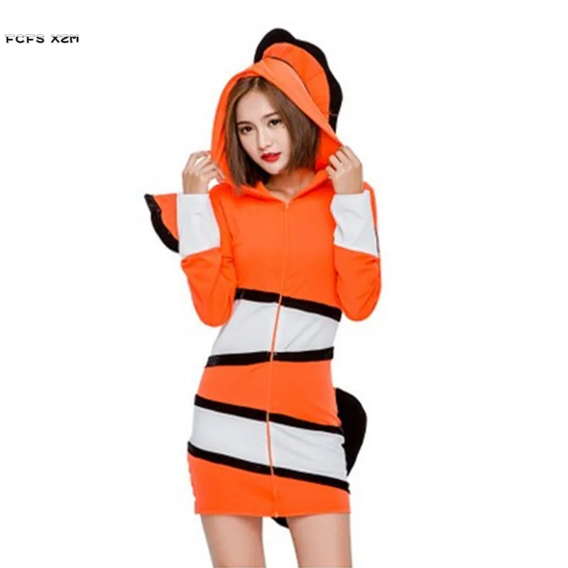 Женский маскарадный костюм Клоун Фиш; женский костюм для Хэллоуина с изображением рыбки; костюм животного для девочек; Пижама для взрослых; карнавальный костюм Пурима; маскарадное праздничное платье
