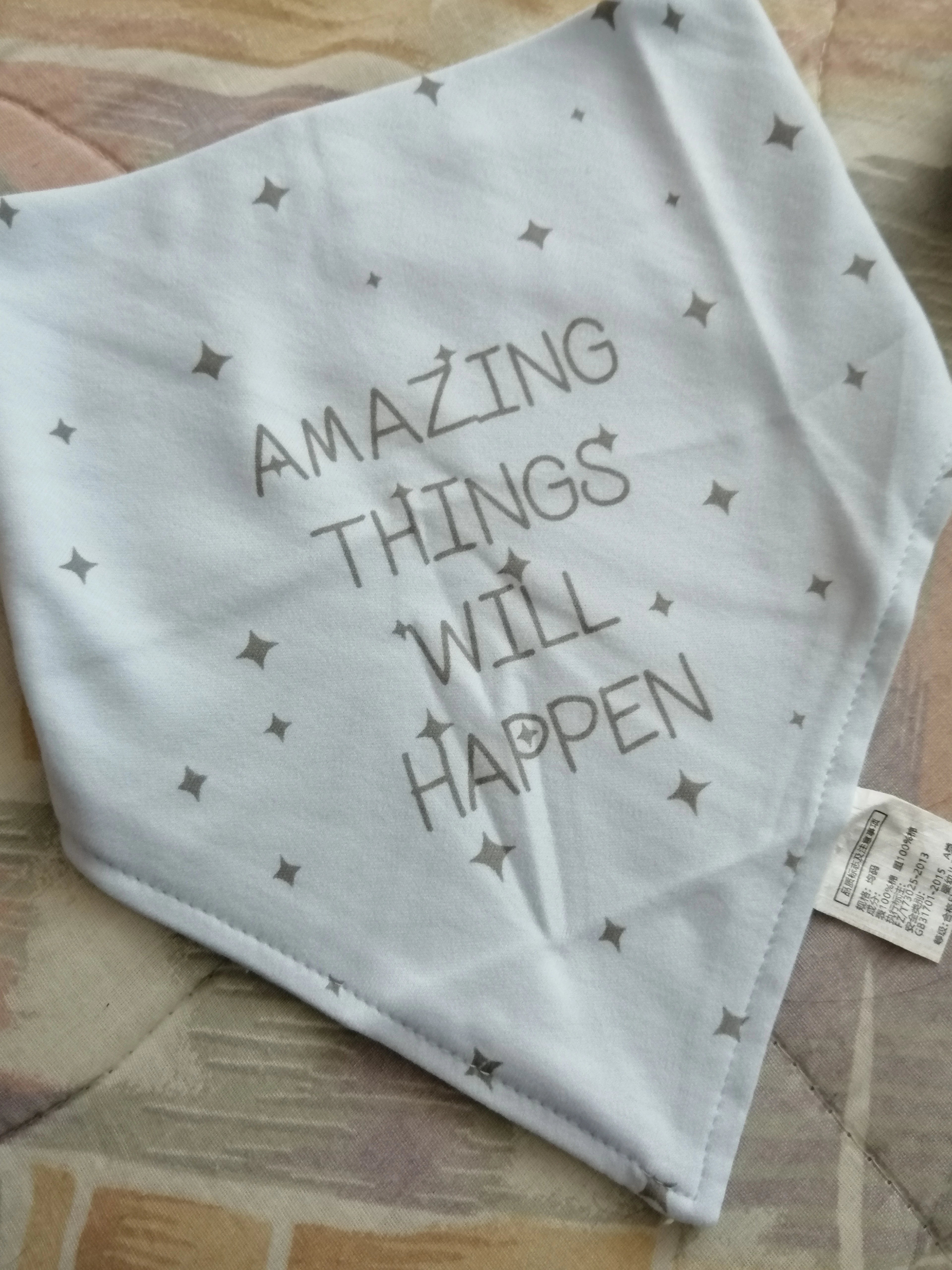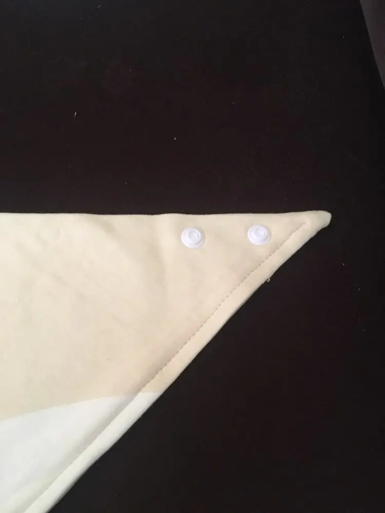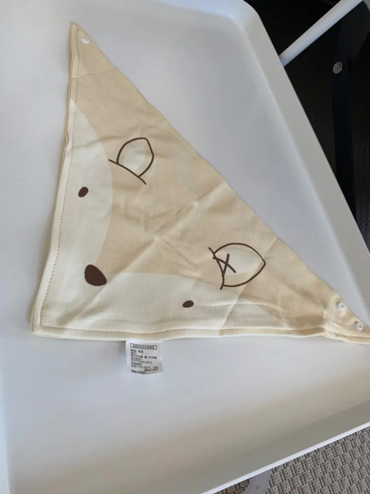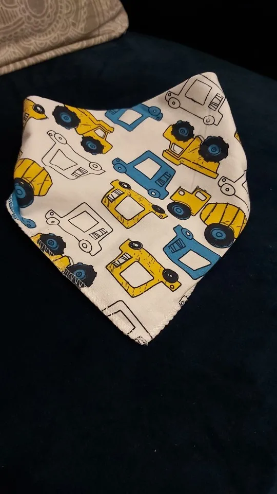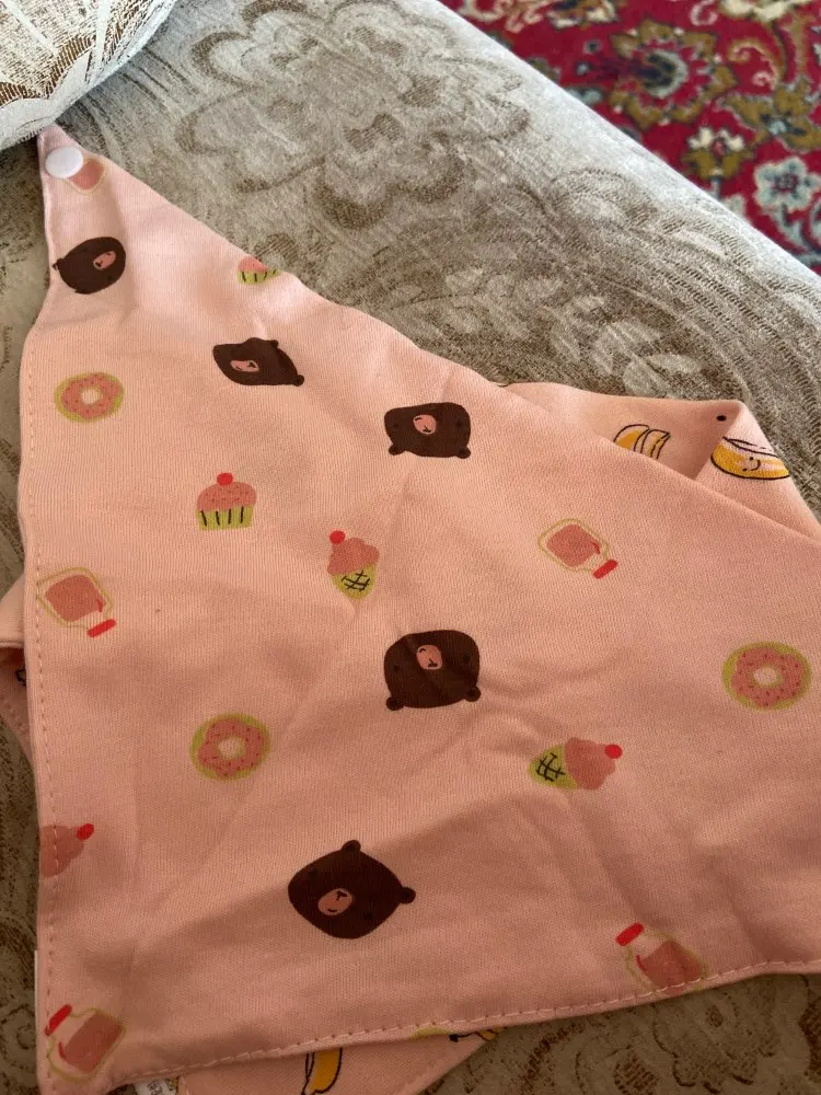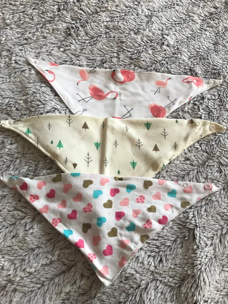 Красивый, мягкий, хлопковый слюнявчик, я заказала 3 штуки. Регулируется пластиковыми кнопками, из есть 2 для регуляции объёма шеи. Белые вживую имеют голубой оттенок, но это из не портит. Рисунок нанесен аккуратно, после стирки не отвалится. Шов аккуратный, ниток не торчит, запаха нет. Доставка около месяца, спасибо, все понравилось)