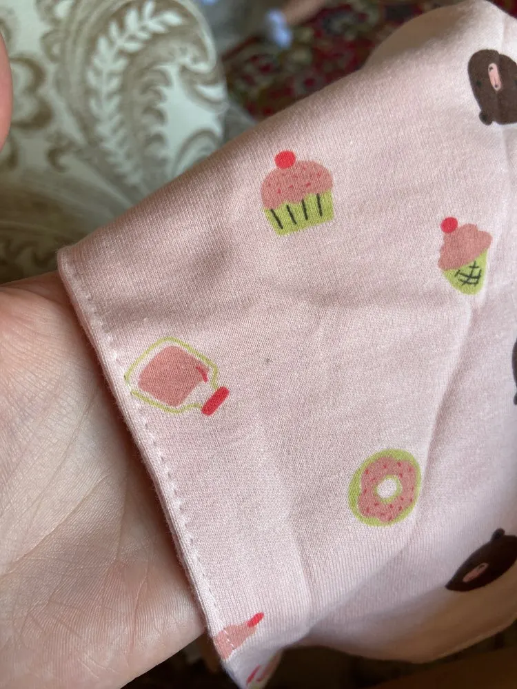 Всё отлично. Ткань приятная. Рисунок чёткий. Кнопочки все качественные