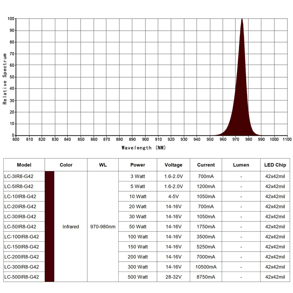 Светодиодный чип высокой мощности IR 980nm 3 Вт 5 Вт 10 Вт 20 Вт 30 Вт 50 Вт 100 Вт 300 Вт 500 Вт инфракрасный излучатель COB 3 5 10 20 30 50 100 Вт светильник