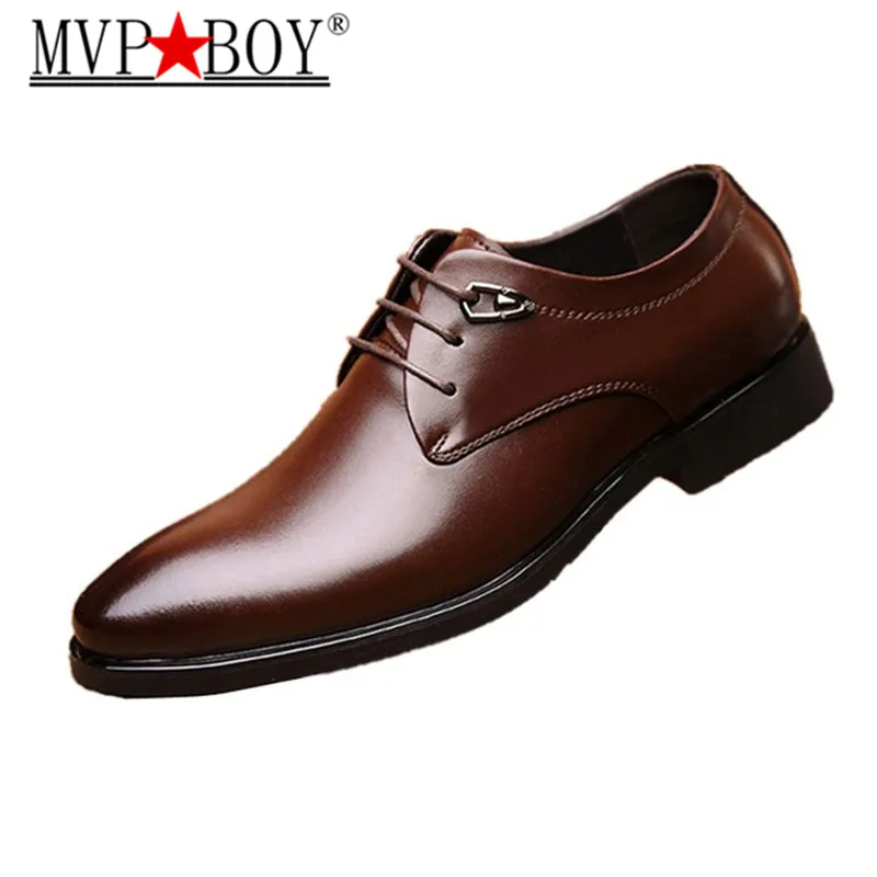 Мужские демисезонные Кожаные Туфли-оксфорды MVP BOY, Классические деловые туфли, остроносые туфли, большой размер 38-43, 2018