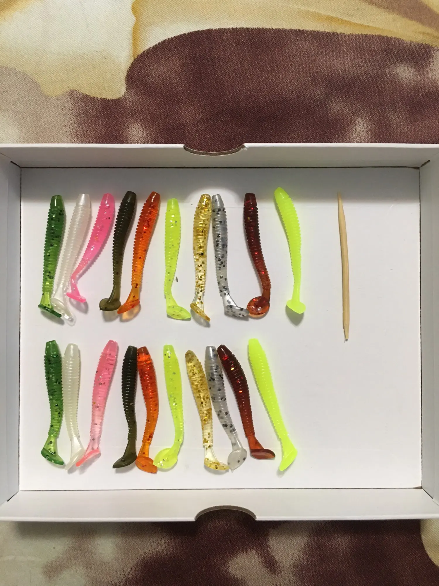 Резина на микроджиг, 5см, качество отличное, сейчас зима, она конечно не разловлена, но по качеству резины такая же как LJ, сравниваю с имеющимися «тиогами» Лаки Джона. Но учтите, она без аттрактанта, но и без постороннего запаха. Шло в МО долго конечно, но именно из-за почты России. Товар и продавца рекомендую! заказывал 2 упаковки микс-цвет. 5+ однозначно.