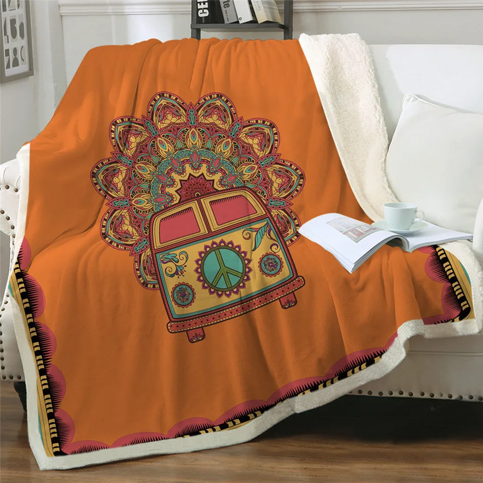 Постельное белье на выход хиппи винтажное автомобильное бархатное плюшевое одеяло оранжевый Мандала шерпа одеяло богемный мини Ван мир диван одеяло