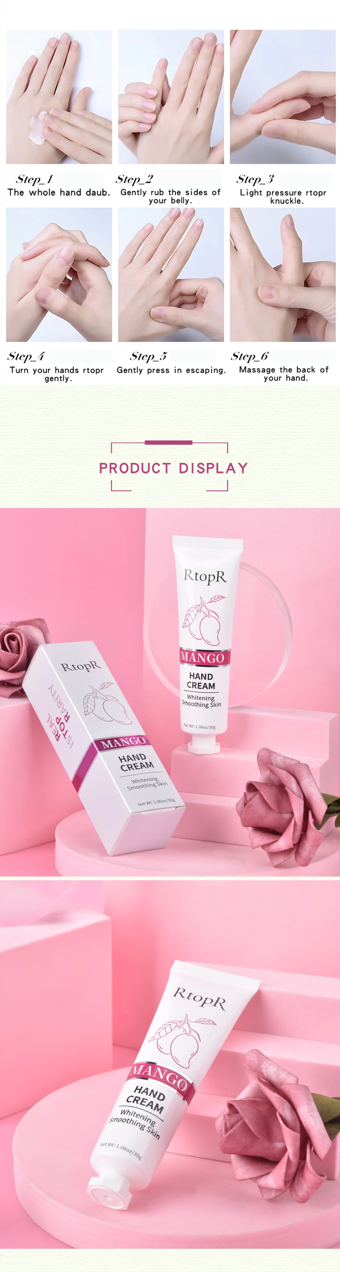 Содержит экстракт манго и glycyrrhiza, он глубоко питает кожу и делает кожу мягкой и нежной, защищает кожу, снимает тонкие и сухие линии, укрепляет нежность, яркость и мягкость кожи, восстанавливает тусклую и огрубевшую кожу, также есть гиалуроновая кислота, укрепляет нежные руки, длительное увлажнение, Сделать кожу влагой и полной, она может предложить для кожи наиболее полное отбеливание и питание, сделать кожу свежей и динамичной, естественной и чистой. И создает свежую и комфортную атмосферу.
