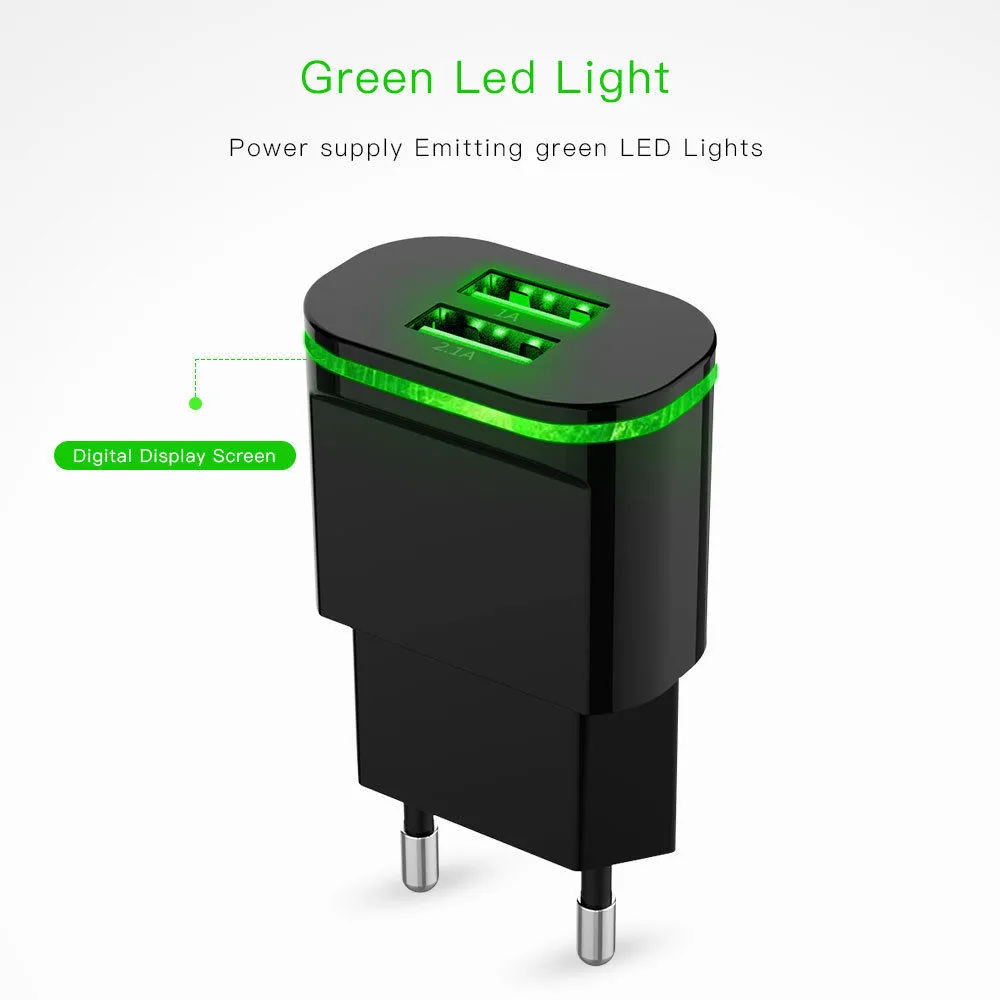 Зарядное устройство USB со светодиодной подсветкой, 2 порта, 5 В, 2...