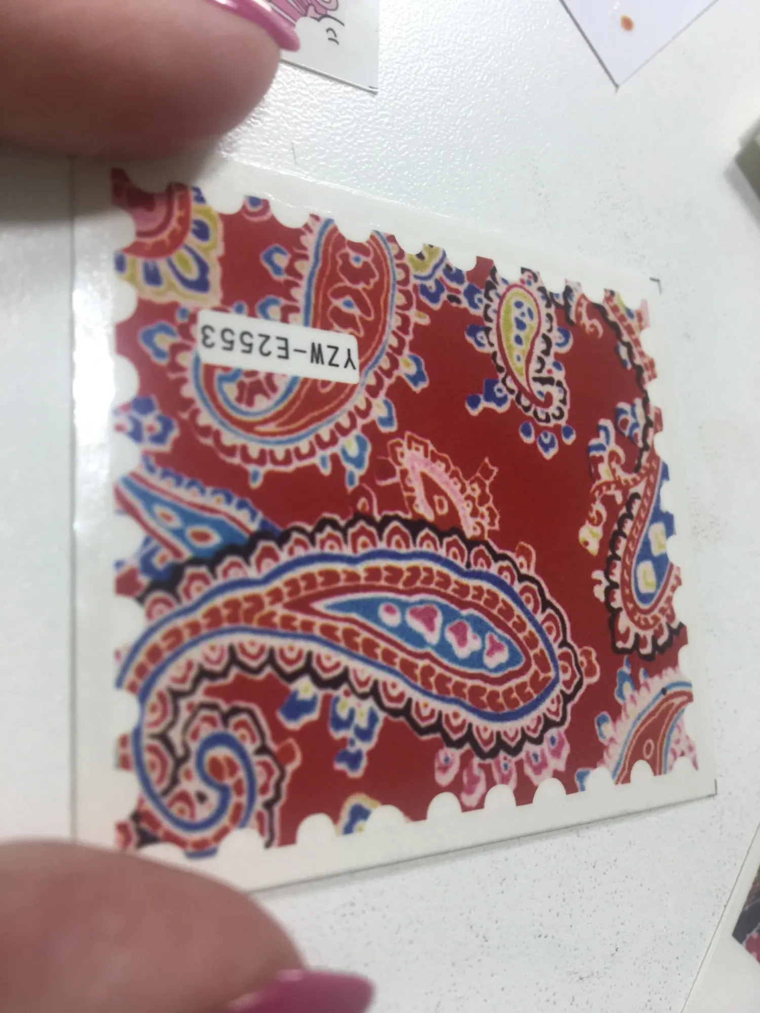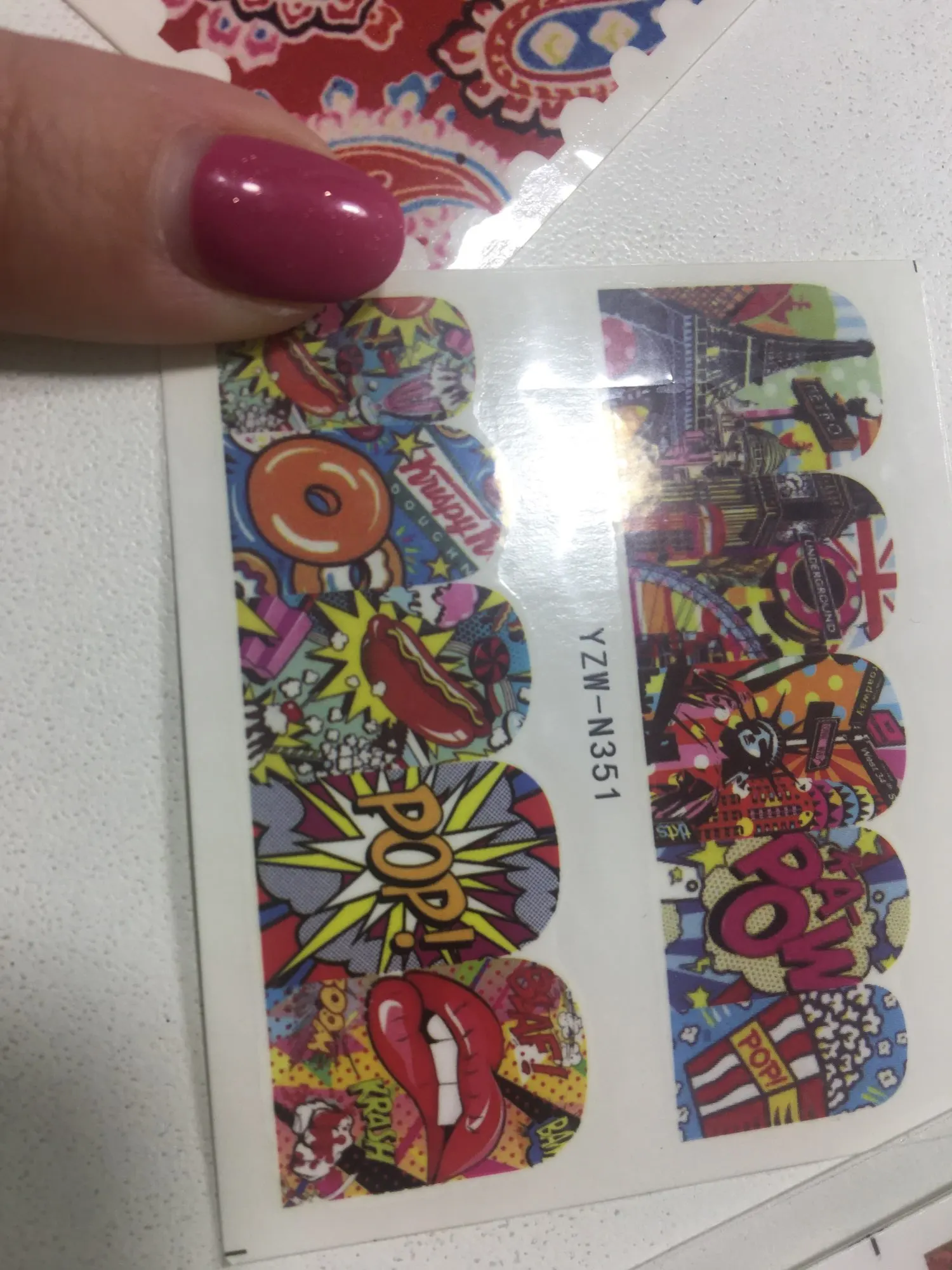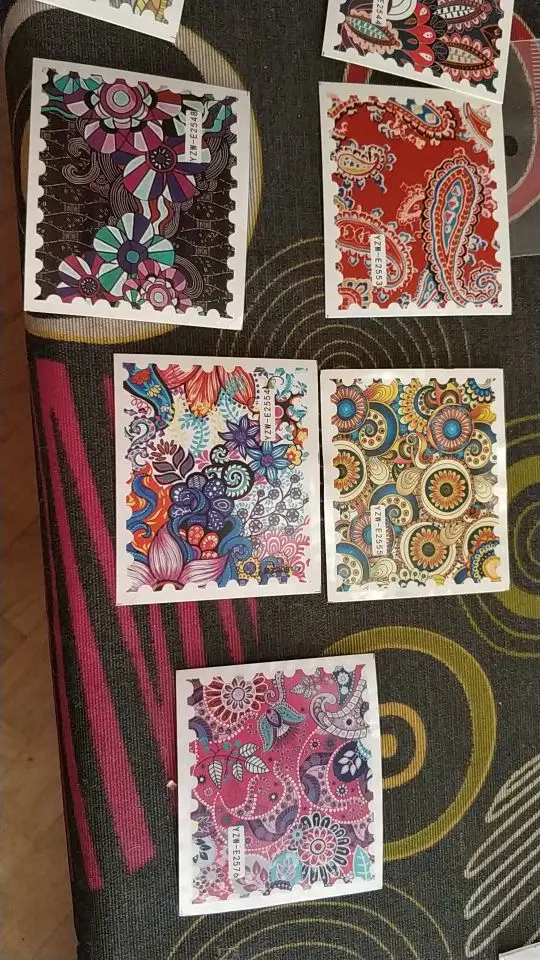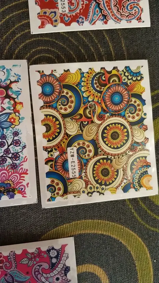 Добрый день. Очень красивые наклейки, спасибо. Насыщенные цвета, дудл в технике "червяки", да нет, не блёклый он, но по глазам - да, не бьёт, не ВАУ яркий. Водные, крепятся на базу, клей для фольги, топ-покрытие, жидкое стекло, просто суперклей, как вариант (подходят для декупажа во всех техниках, допустим, бусинок, не только для ногтей). Красивые, правда. Доставка за 18 дней до Екатеринбурга консолидацией, продавца рекомендую.