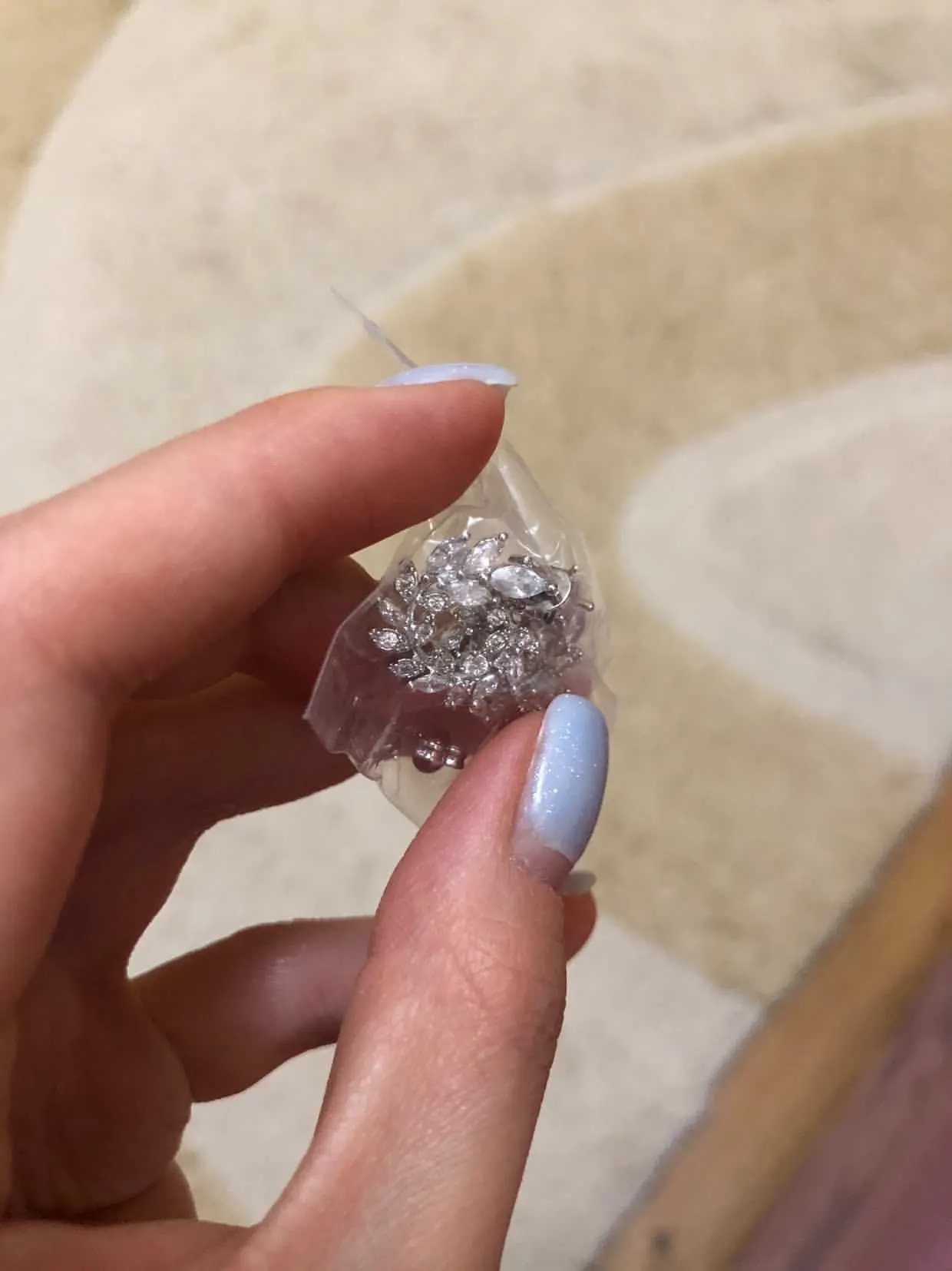 Хорошо упакованы в коробку, которая защищена во время транспортировки, серьги такие же, как на картинке, я до сих пор не носила, не выглядят серебристыми, надеюсь, что они остаются такими же, под огнями блестят очень