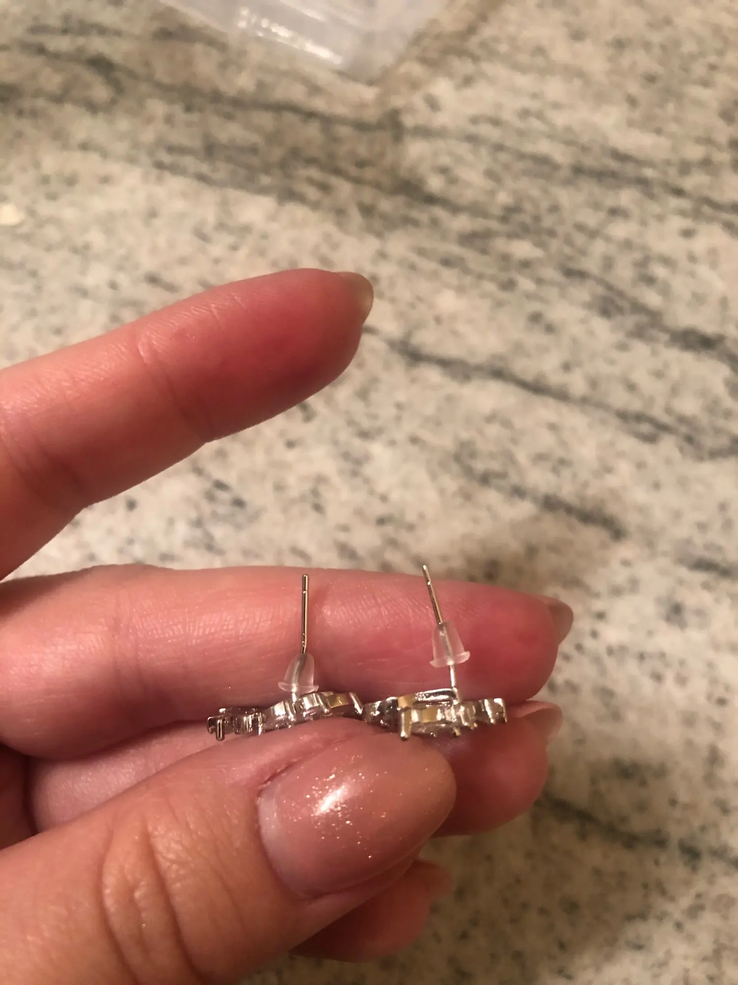 Маленькие и аккуратненькие серьги-гвоздики. Очень удобные и незаметные. Выглядят и переливаются как настоящие:) очень довольна)