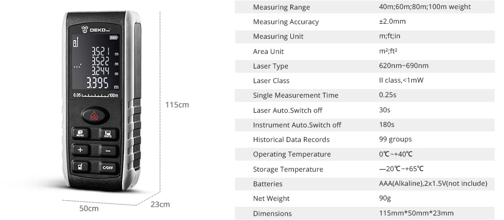 Дальномер лазерный DEKO, 406080100 м