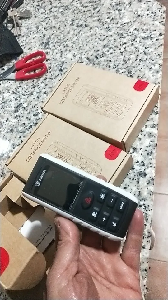 Заказывал 11. 11. Получил 18. 12. Все как в описании. Брал на 70 метров. Есть инструкция на английском языке. На небольшую дистанцию все точно, на всю дистанцию в 70 метров пока нет возможности. Функции на сколько я понял различные по мимо измерения дистанции также измеряет площадь и куб. Запоминает несколько значений прям на экране. Еще не разобрался во всем, но могу сказать что аппарат стоящий. Есть в комплекте ремень небольшой. Батареек в комплекте нет. Есть лазерная метка, что очень удобно. Упаковано в пупырку, а внутри в коробке.