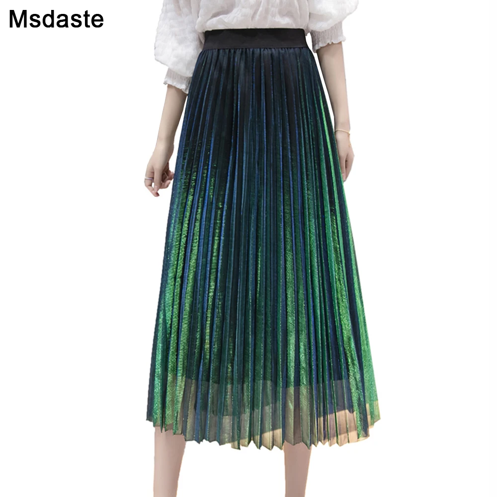 Женские летние плиссированные юбки 2019 сетчатые миди Высокая талия винтажная кружевная Женская юбка серый фиолетовый зеленый плиссированные юбки женщин зеленая юбка для девочек Молодая леди юбка случайные дамы юбки