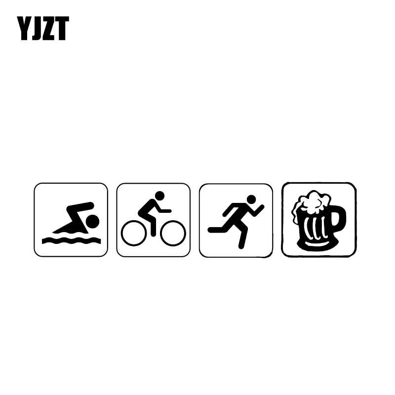 YJZT 17,7*4,2 см забавная наклейка на бампер Триатлон плавать велосипед бег и пиво автомобиль наклейка виниловый силуэт