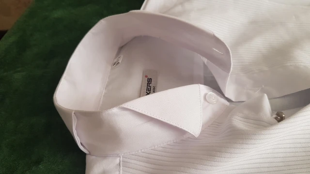 Рубашка называется классическая, не самом деле - под смокинг, с соответствующим воротником и манжетами под запонки. Брала самый маленький размер на подростка 170см/56кг, оказалась сильно велика. Размер изделия: плечи 47см, грудь 52см, рукав 63см, длина 75см. Состав ткани тоже не соответствует заявленному 90% хлопок, 10% полиэстер, никакого модала. Цвет белый, не желтит. Доставка заняла месяц до Краснодара.