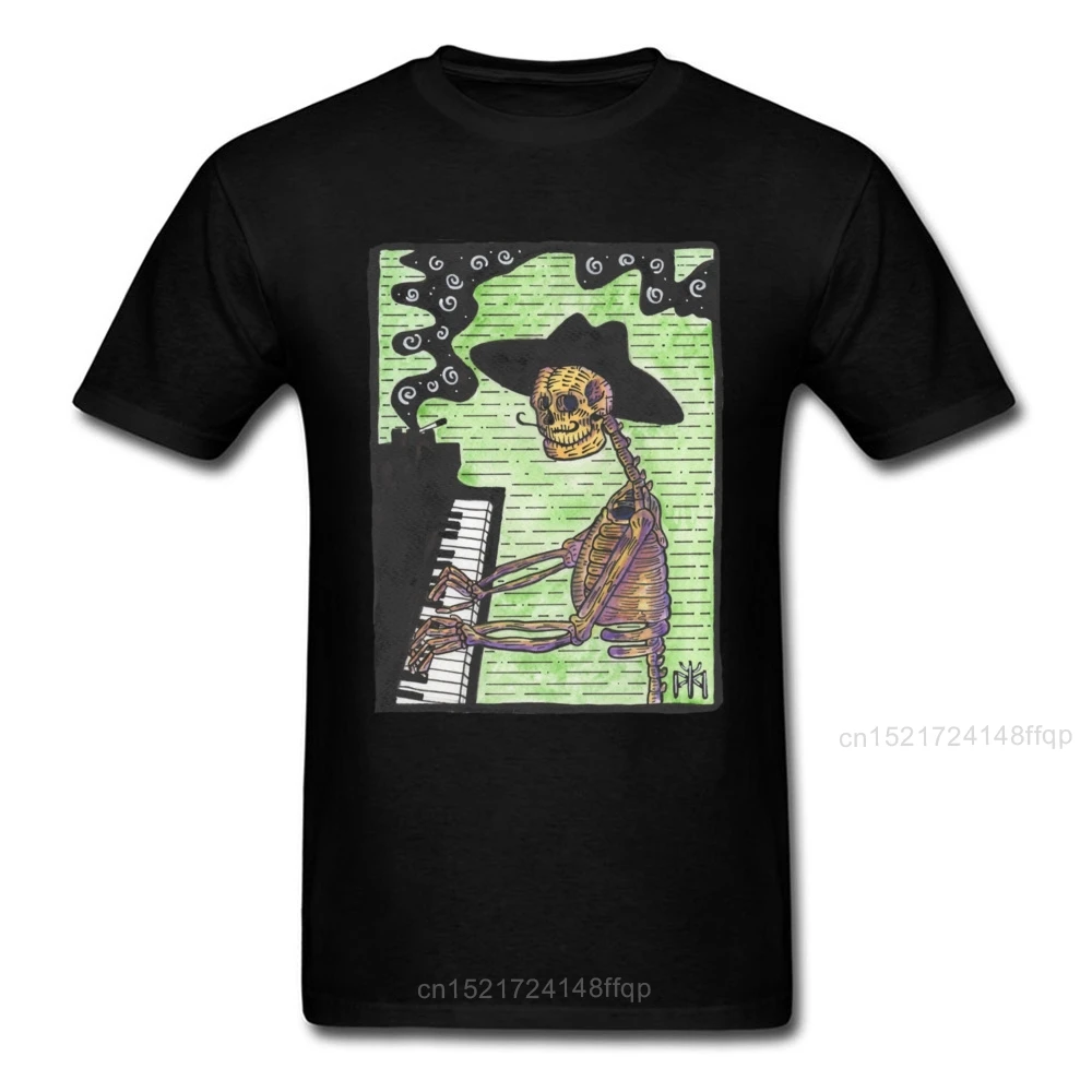 Мужская футболка в стиле хип-хоп с изображением скелета джазового пианиста, черная футболка в стиле ретро, винтажная одежда, хлопковые топы с черепом, Уникальные футболки с художественным дизайном