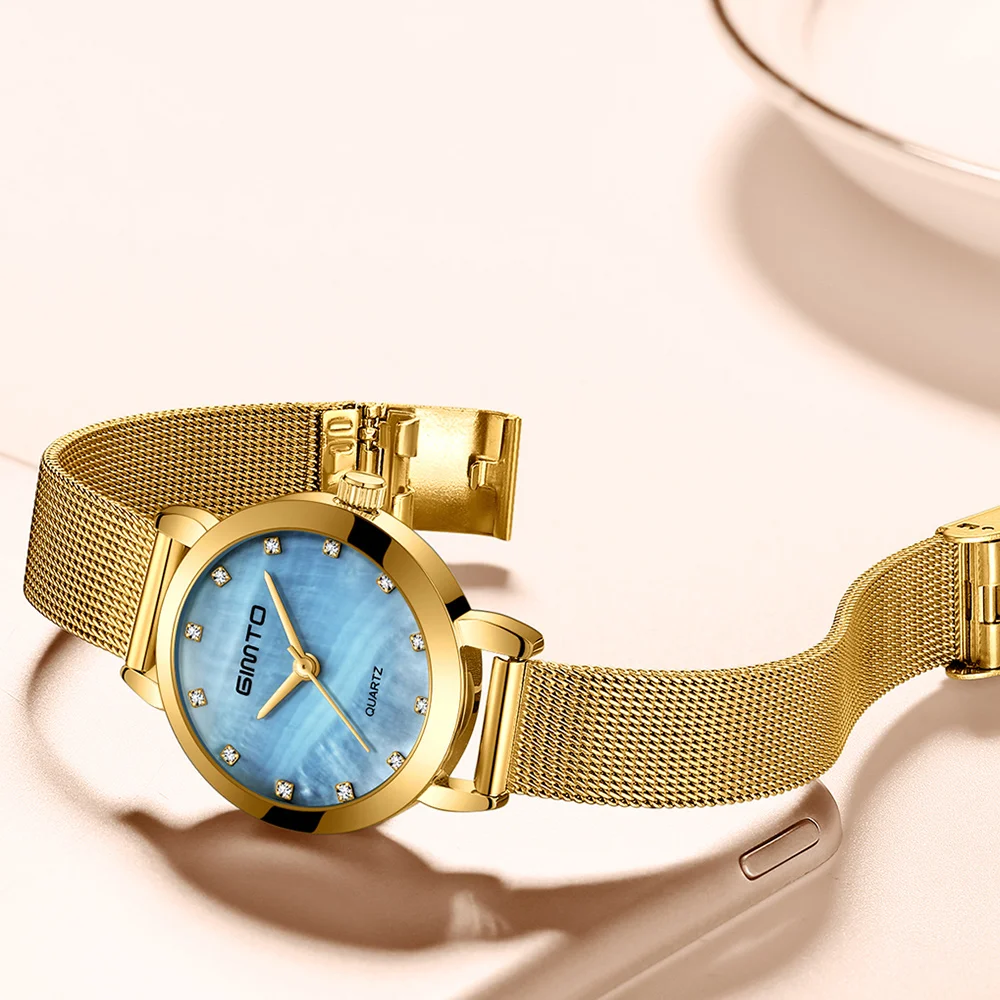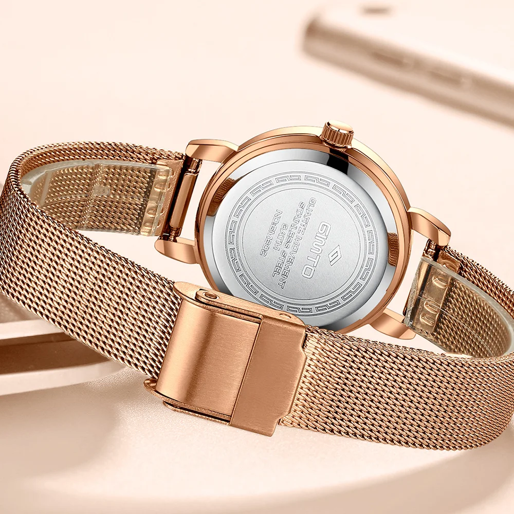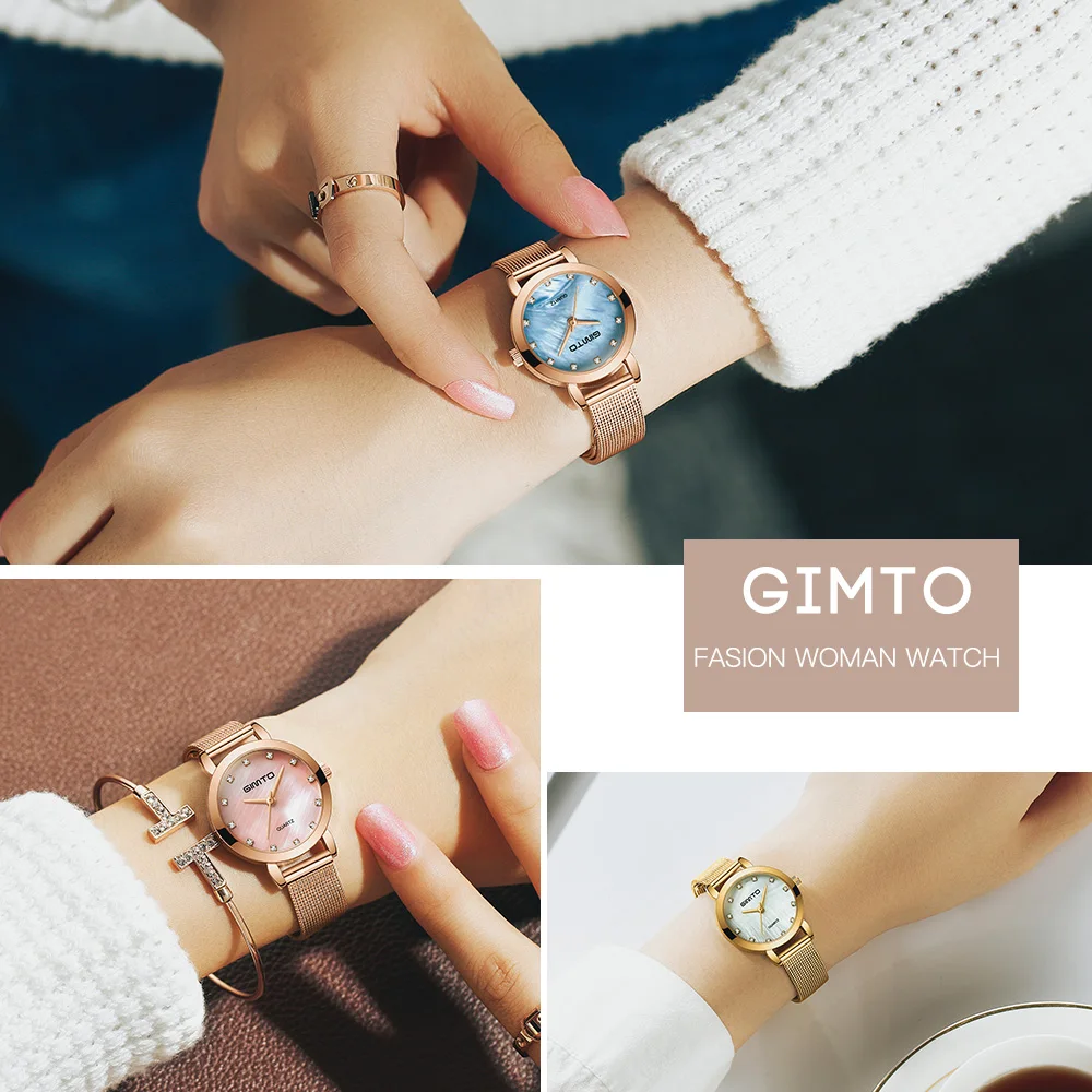 2018 GIMTO женские часы Топ бренд роскошный браслет кварцевые женские часы золото Сталь платье женские наручные часы relogio feminino