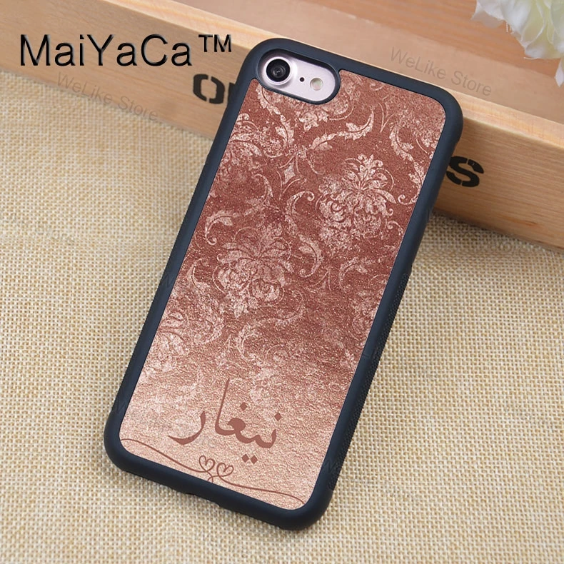 MaiYaCa персонализированный розовый Золотой именной Дамаск на арабском чехле для iPhone 13 12 mini 11 Pro Max X XR XS MAX SE 2020 6S 7 8 Plus чехол
