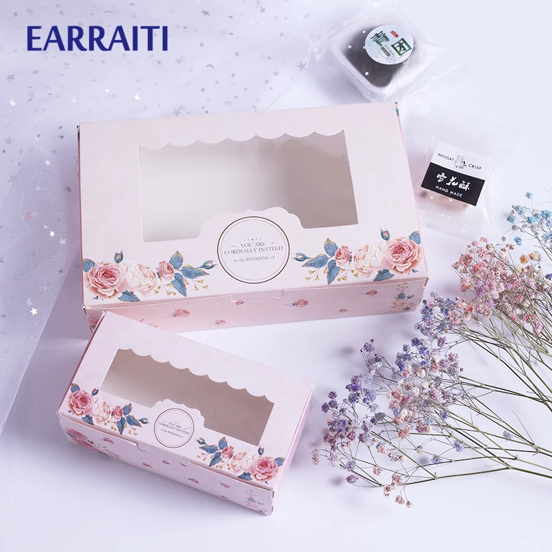 10 шт. бумажная Подарочная коробка с окошком, Свадебная вечеринка, Розовый венок розы, крафт-пакет, упаковка для пищевых продуктов, Конфеты Кекс и печенья