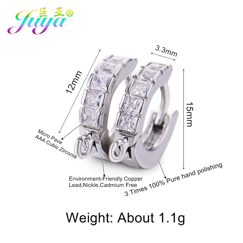 Juya DIY, женские модные серьги, аксессуары для изготовления, золото/серебро/розовое золото, кубический цирконий, застежка на крючок, поставки